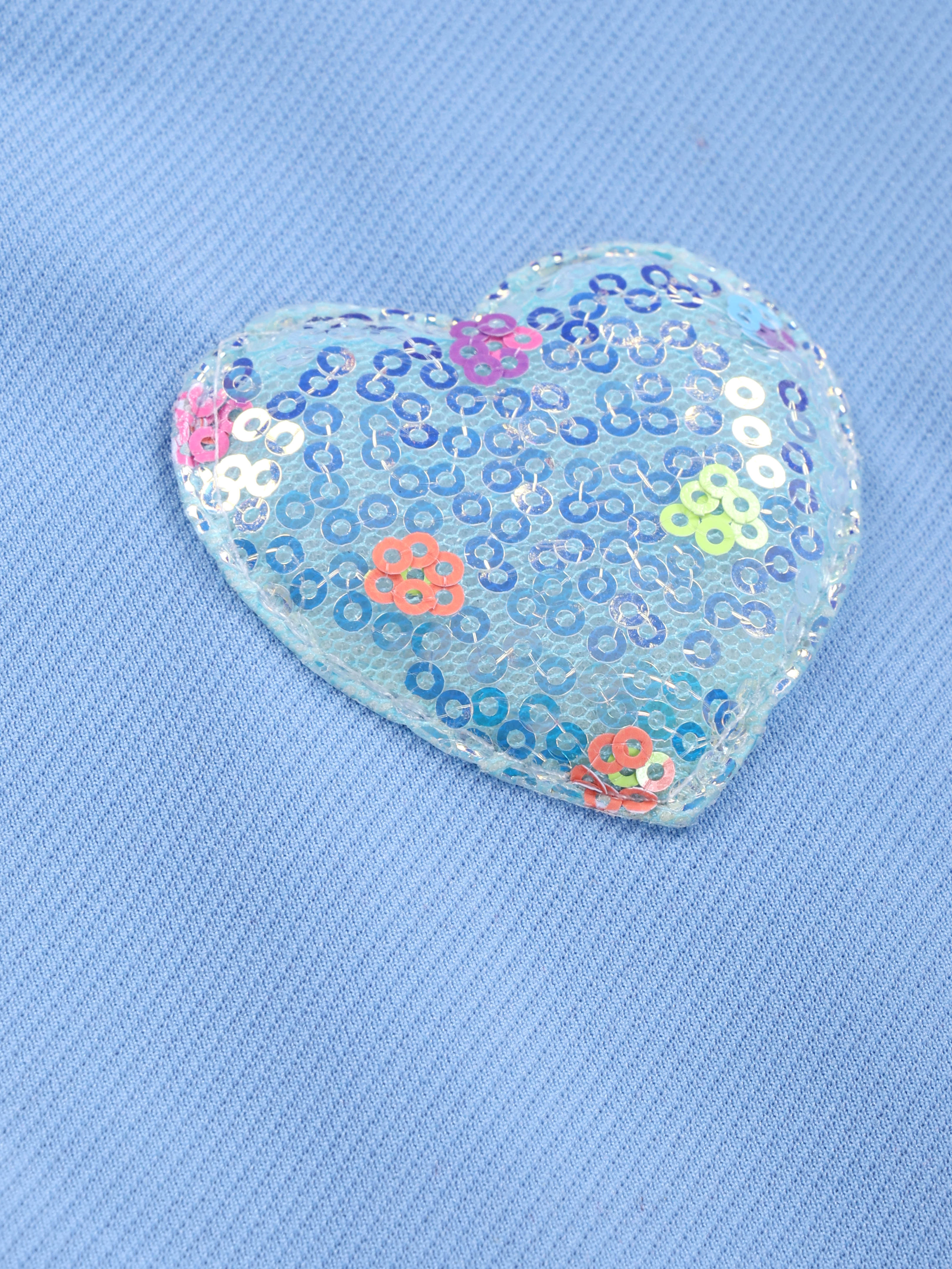 Kiddopanti presents these charming light blue leggings adorned with sequin heart patches that add a delightful touch of fun and flair to your little fashionista’s wardrobe. Crafted from a soft and flexible cotton lycra knit, these full-length leggings offer all-day comfort and a snug fit, making them ideal for everything from playdates to casual outings. The sparkle detail brings a playful sparkle that your kid will absolutely love!