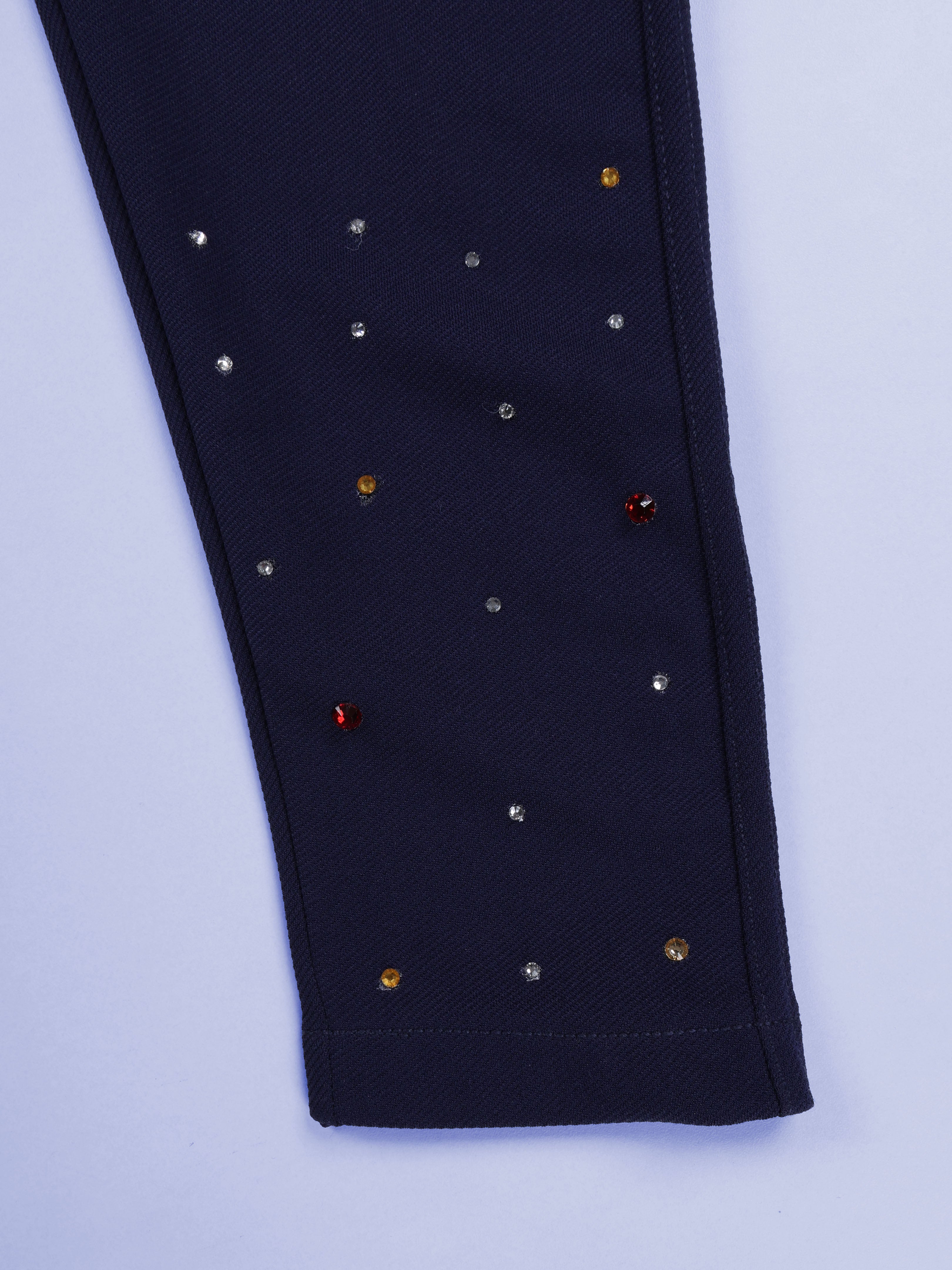 Kiddopanti Girls Cotton Rhinestone And Sequin Heart Solid Jegging Pant