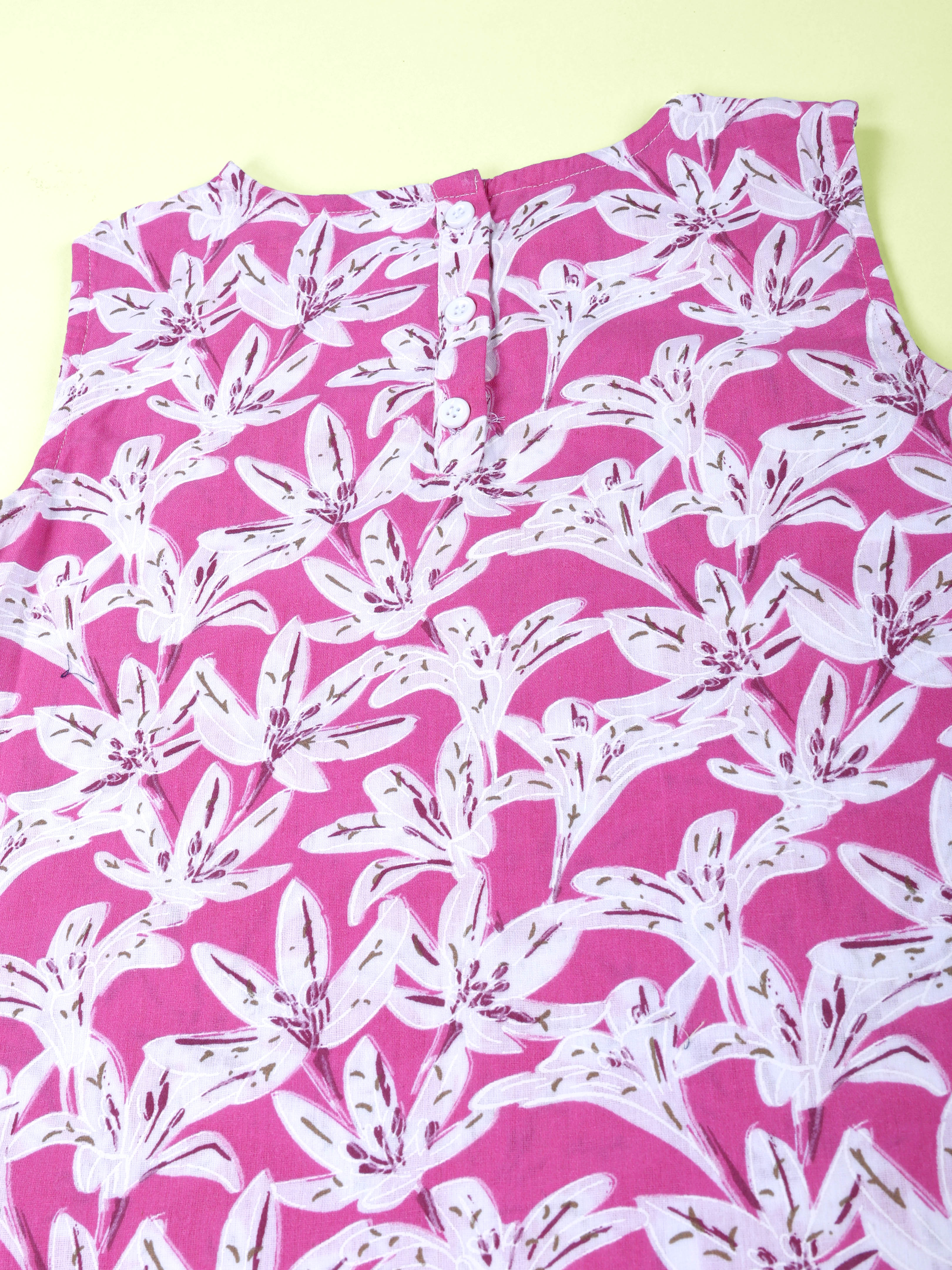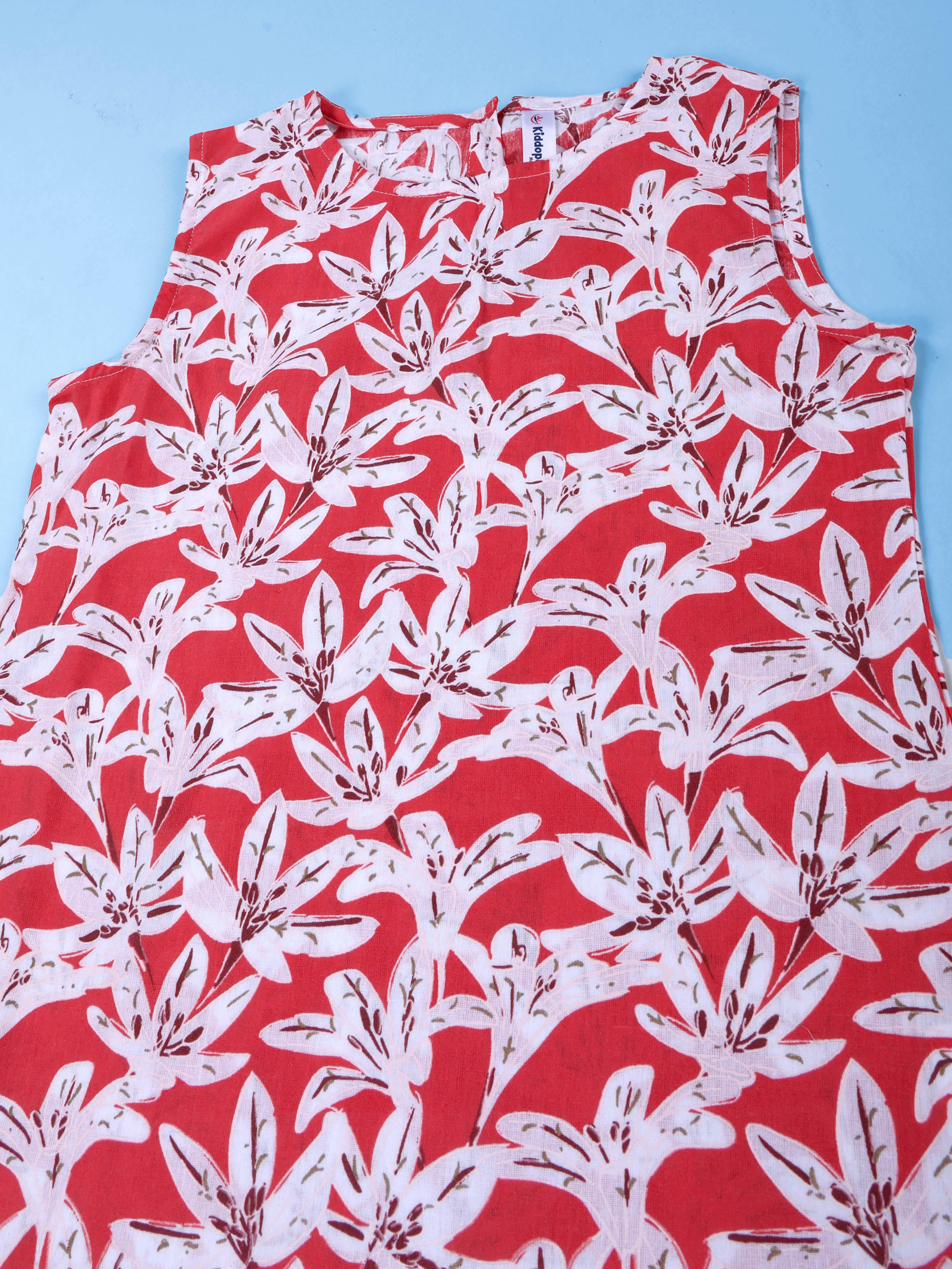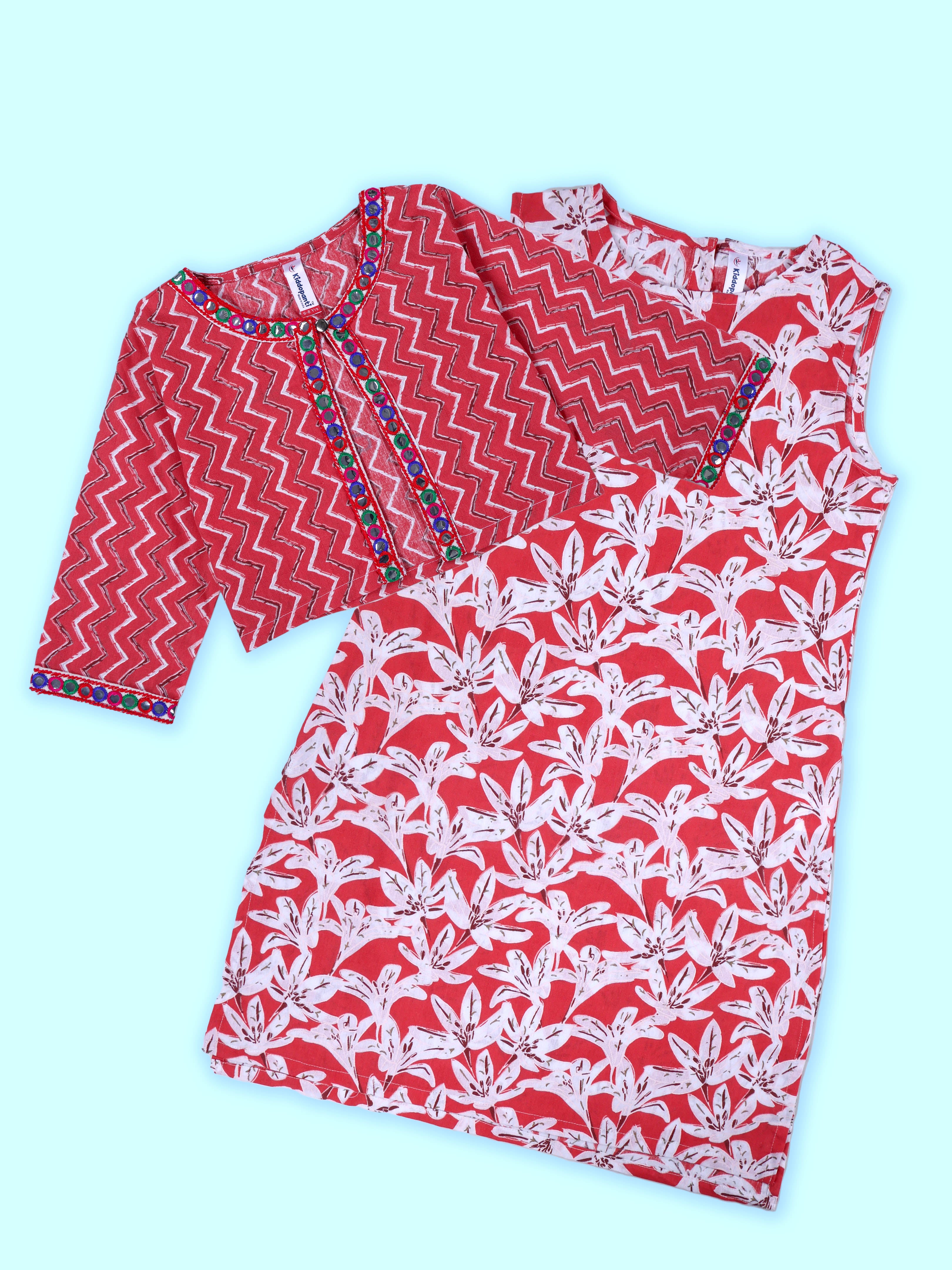Kiddopanti Girls Cotton Floral Printed Sleeveless Kurta with Matching Koti