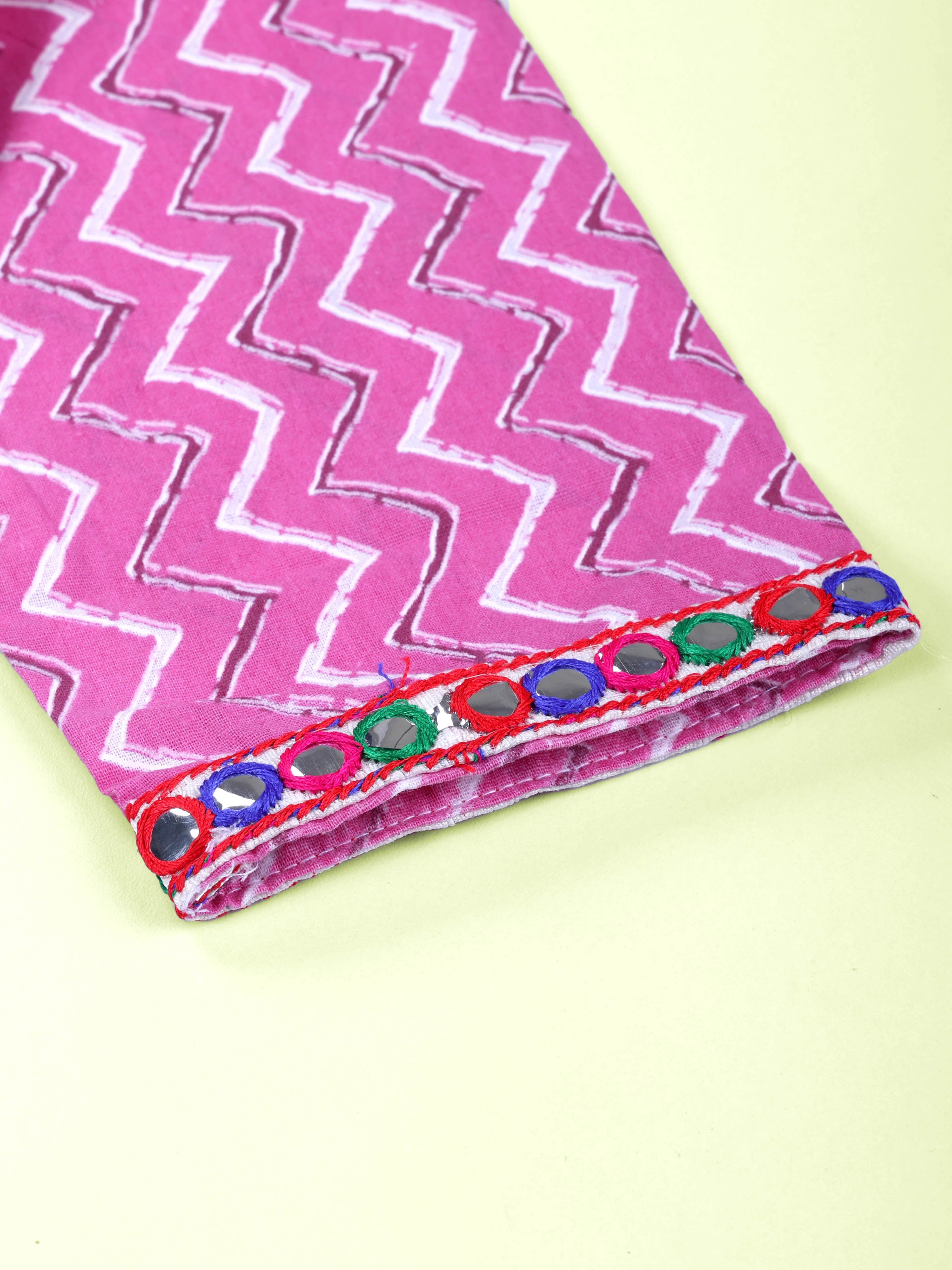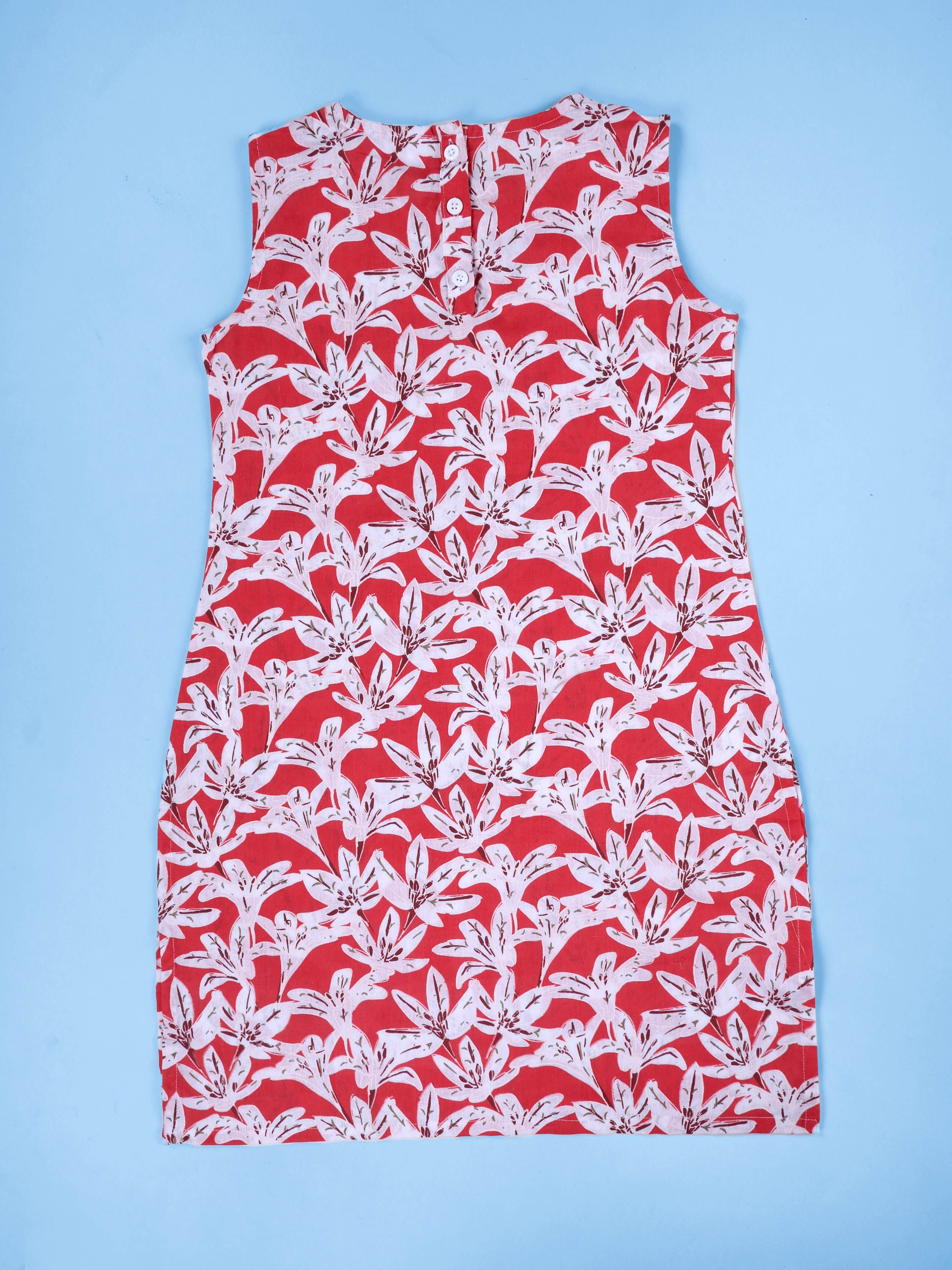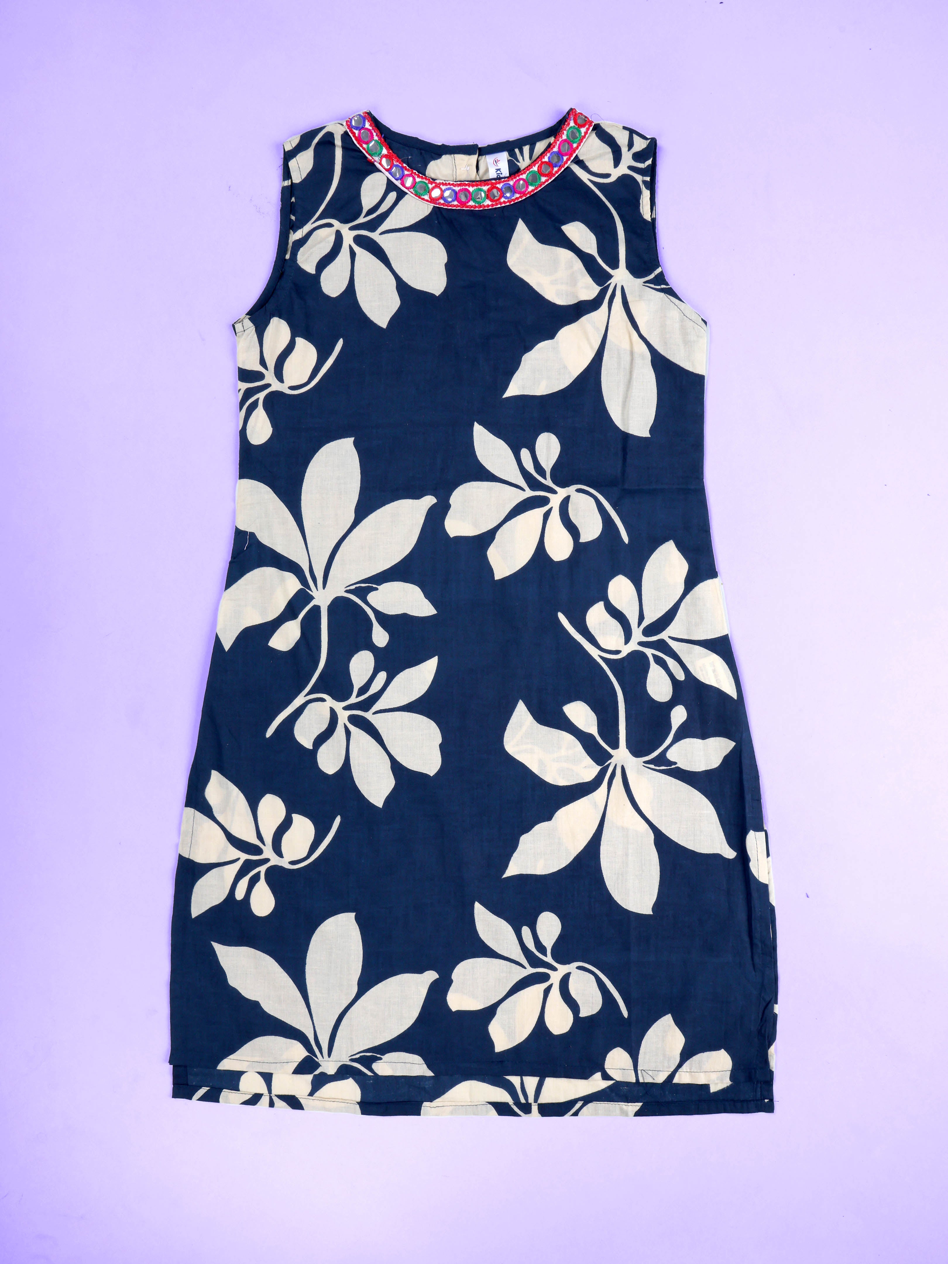 Kiddopanti Girls Cotton Floral Printed Sleeveless Kurta with Matching Koti