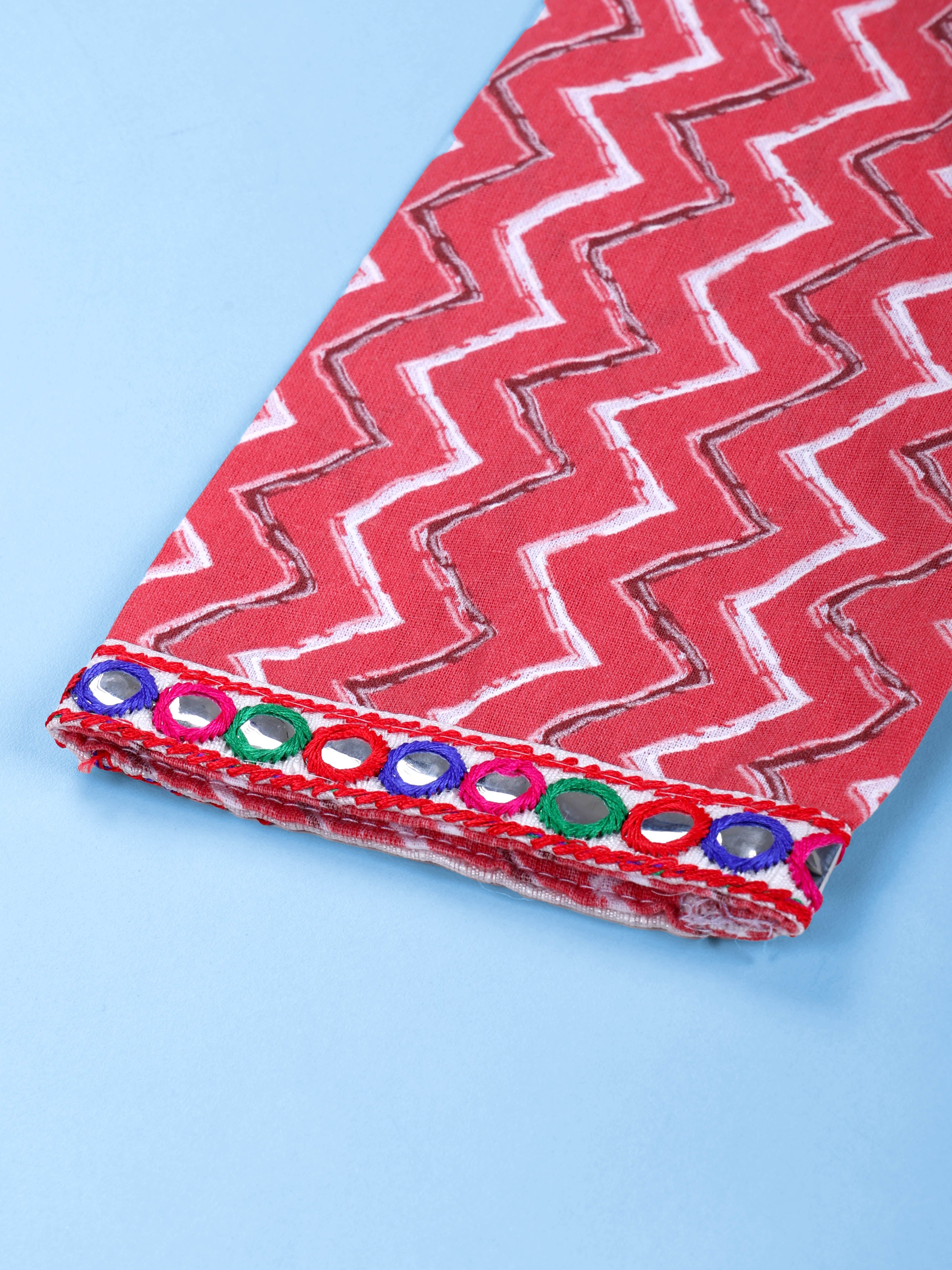 Add a pop of festive charm to your little oneβs wardrobe with this vibrant sleeveless kurta set, crafted from breathable cotton cambric fabric. Designed by Kiddopanti featuring a playful floral inspired print in bright hues, each set is paired with a matching 3/4th sleeve koti adorned with colorful contrast lace on the neckline and sleeve hem. The easy back button placket on kurta ensures fuss-free wear, making it perfect for everyday celebrations or festive outings.