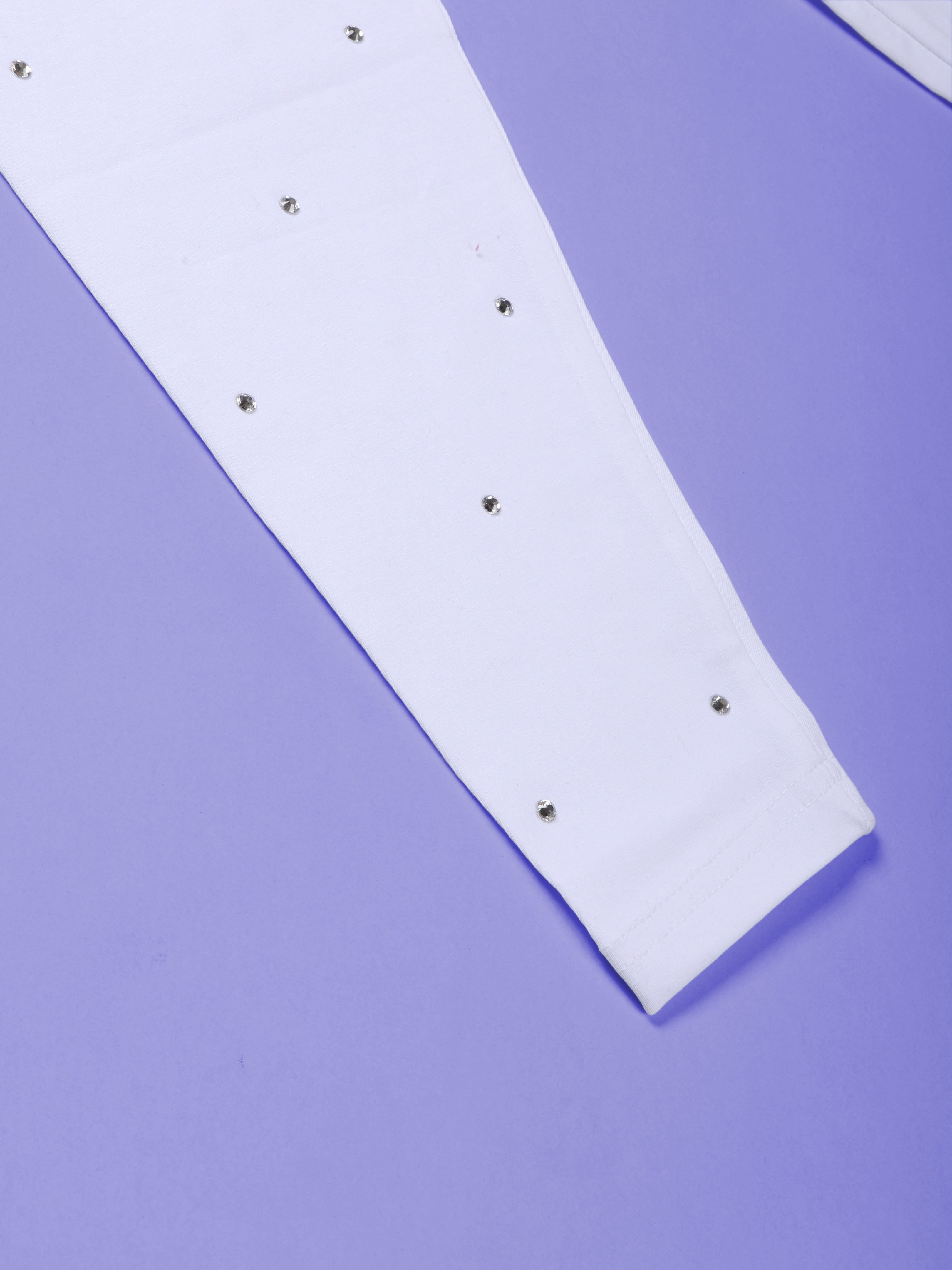 Girls Cotton Spandex Solid Legging With Rhinestones