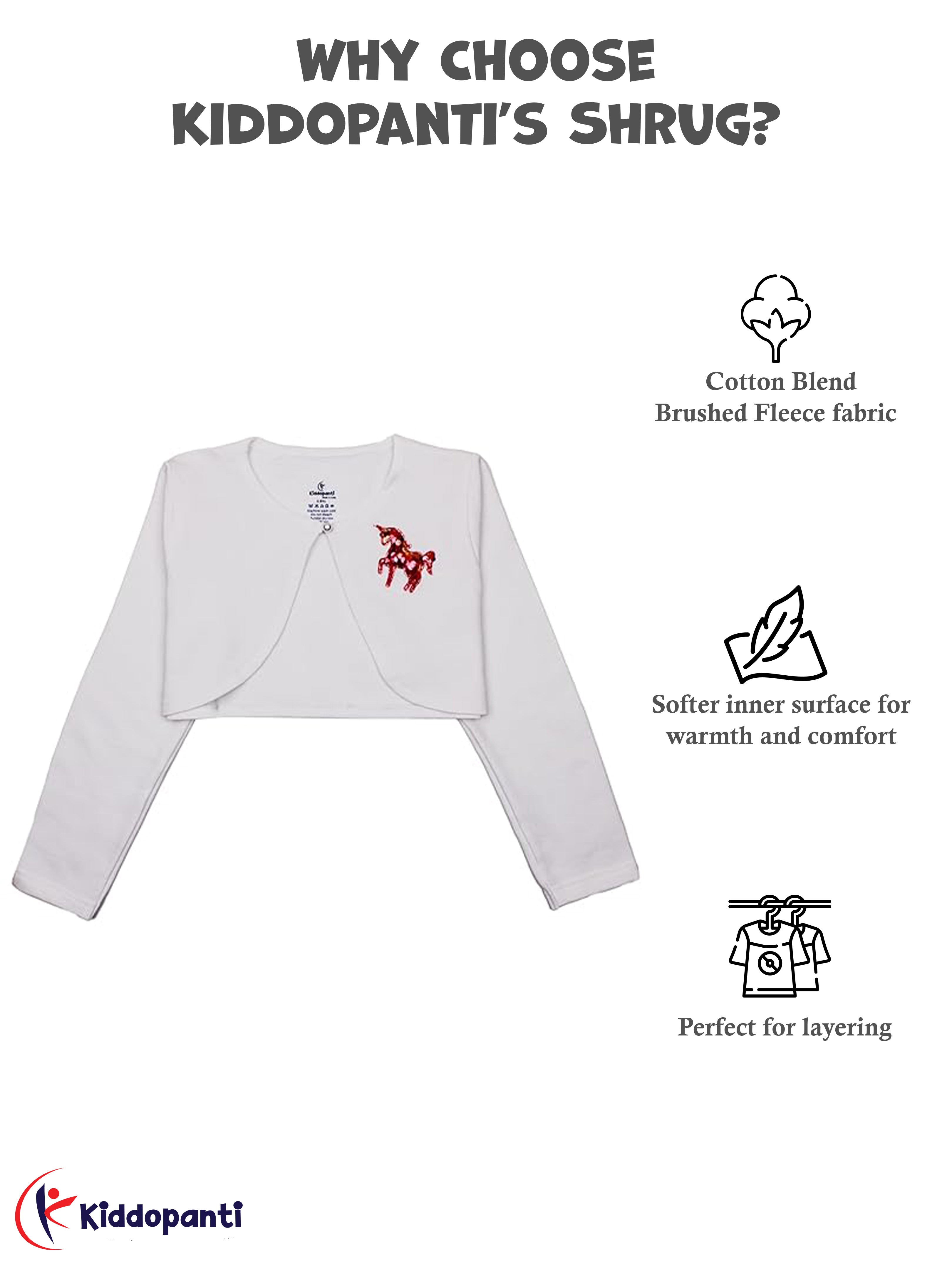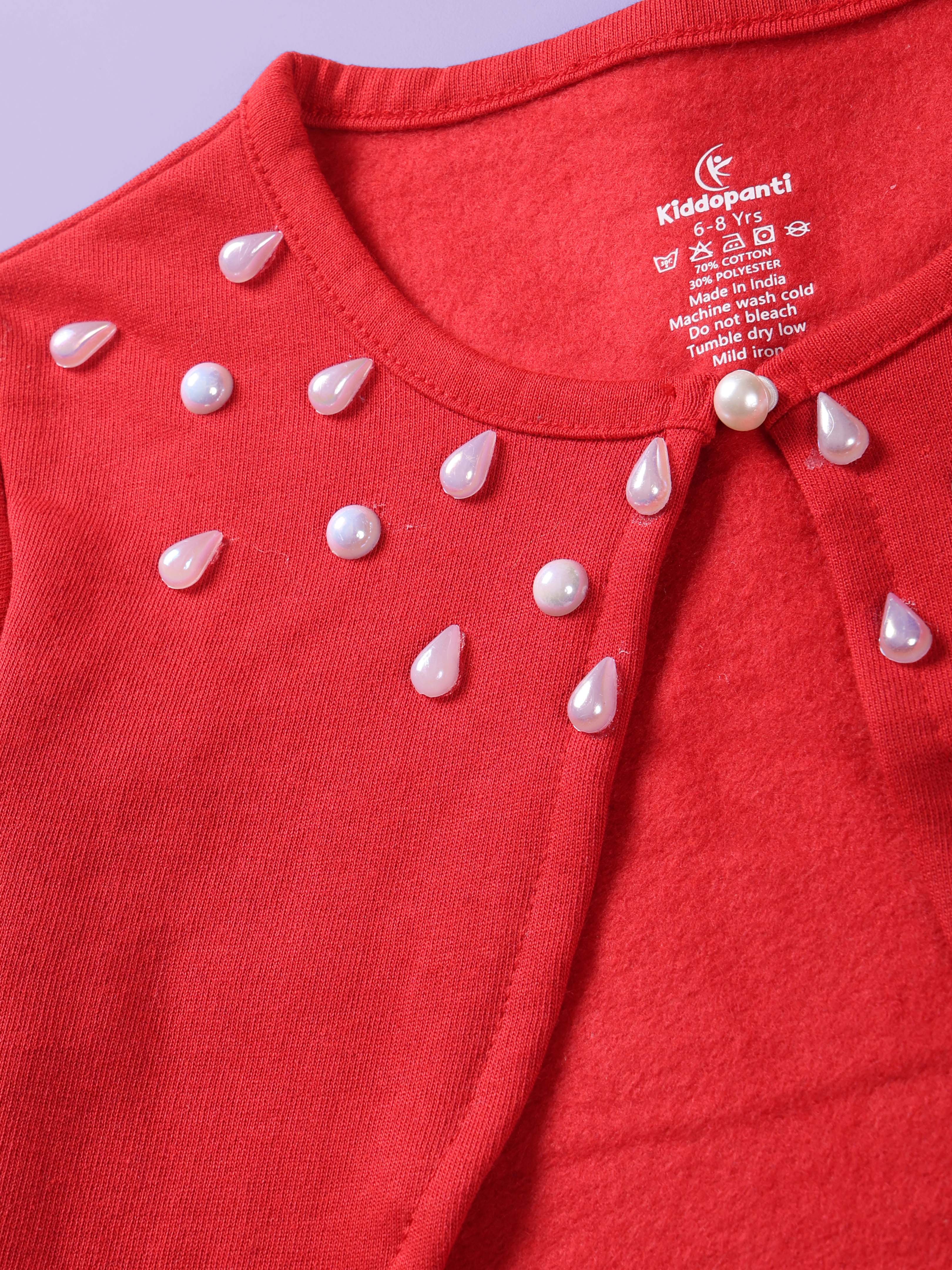 Girls Cotton Fleece Full Sleeves Solid Crop Shrug With Pearls