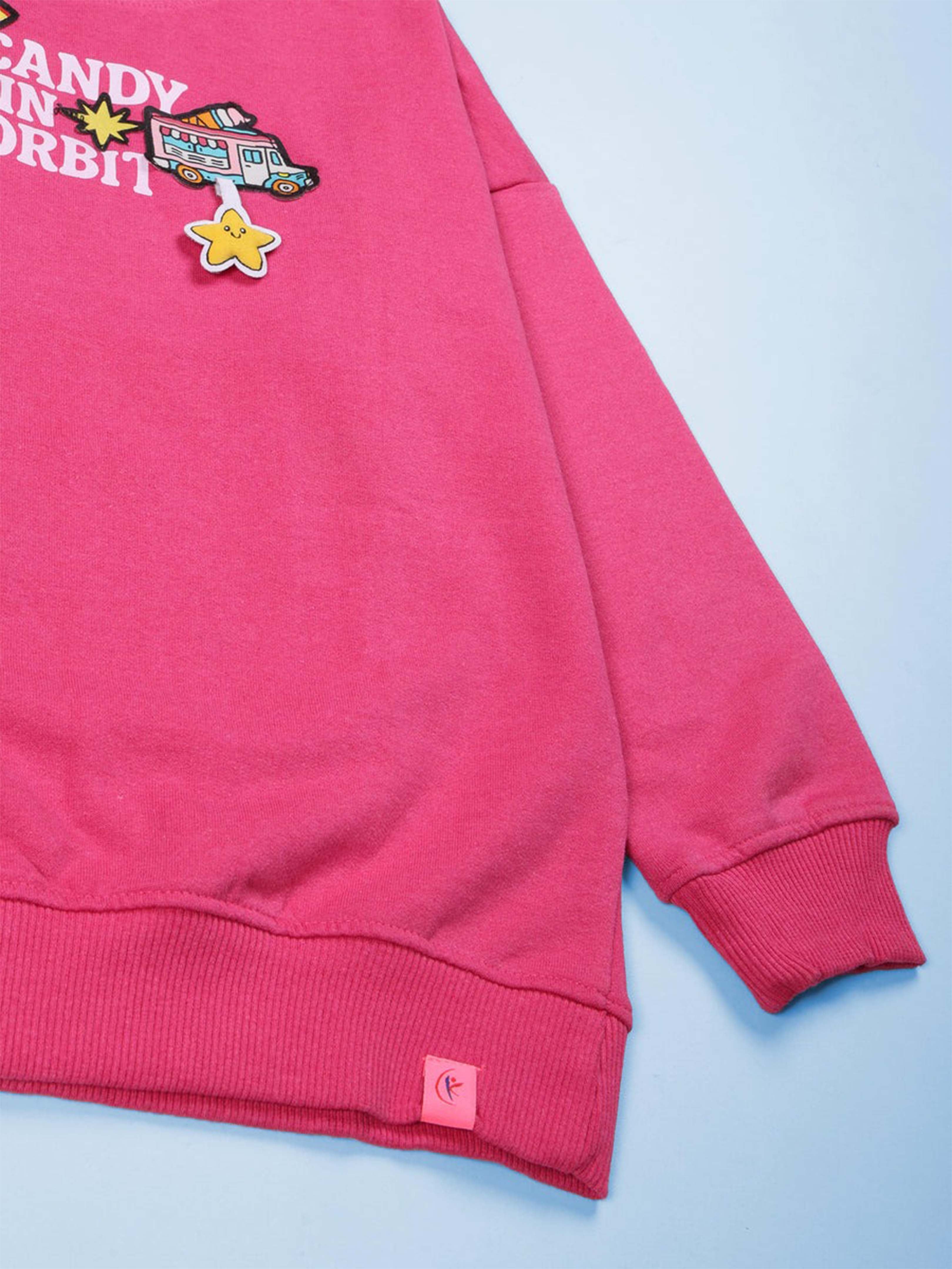 Let her imagination take flight with Kiddopanti’s vibrant and whimsical winter combo! This adorable set pairs a playful Candy-in-Orbit fleece sweatshirt with star-studded embellished denims, giving your little trendsetter the perfect mix of comfort, creativity, and style. Ideal for school, outings, playdates, or cosy evenings, this combo promises warmth with a burst of colour and charm.