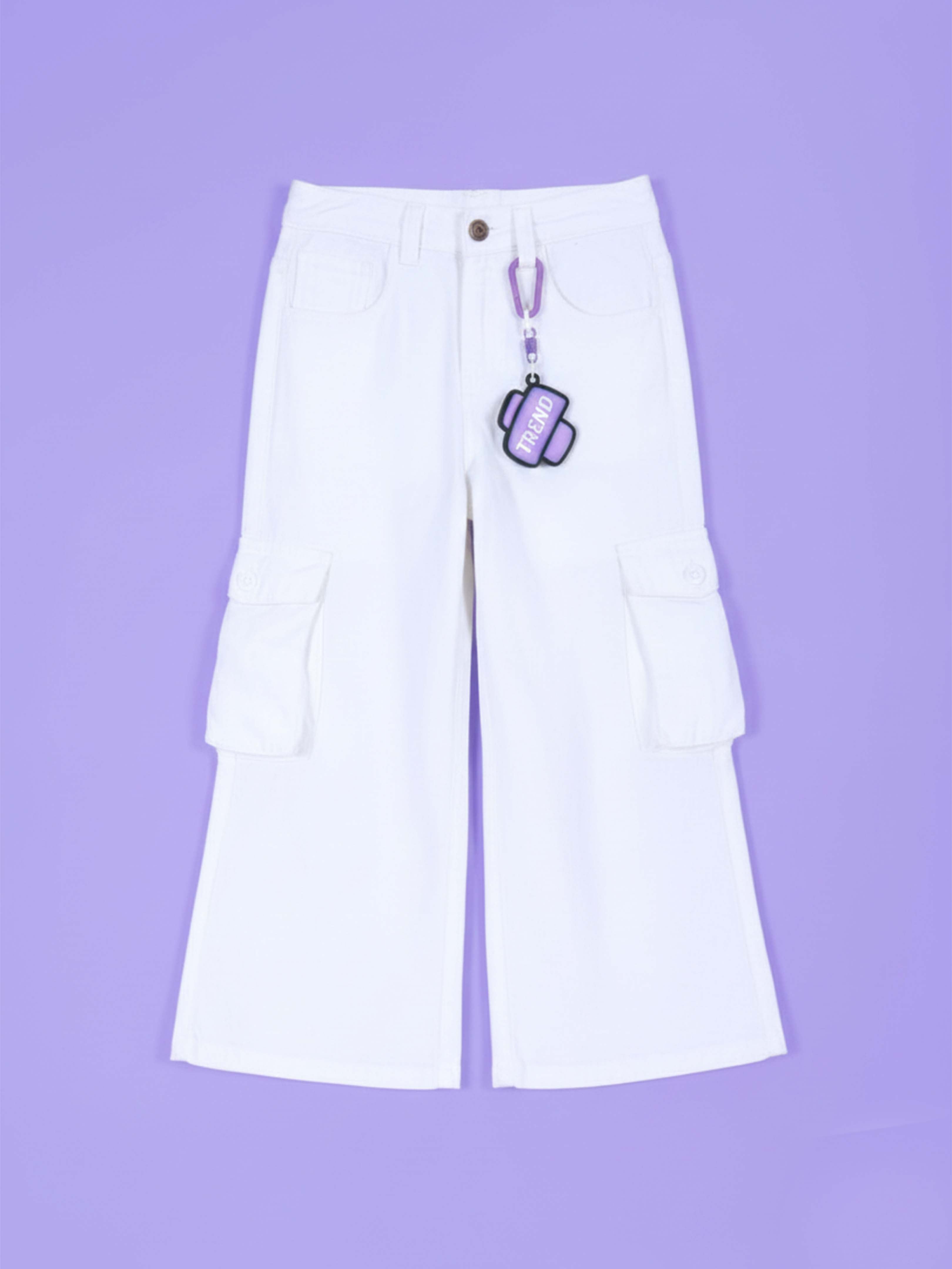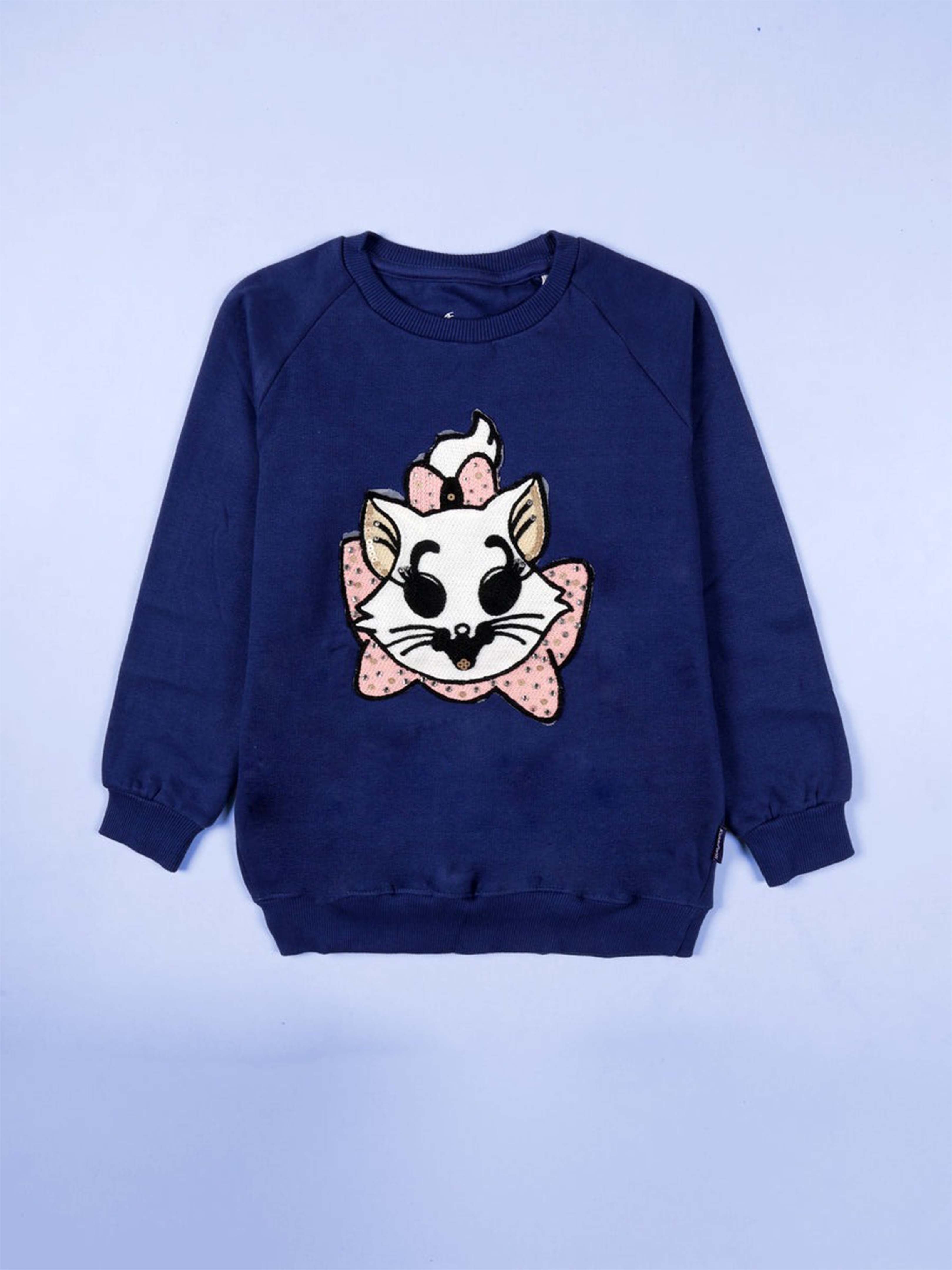 Bring home the perfect blend of cute winter charm and everyday utility style with this exclusive Kiddopanti Girls’ Combo Set. Designed for fashion-forward young girls, this set pairs a warm and adorable Cat Appliqué Sweatshirt with trendy Flared Utility Cargo Denim, making it a complete outfit for the season. The cozy sweatshirt features a large cat face appliqué decorated with sequins and rhinestones, adding playful sparkle to winter days. The stylish cargo denim comes with dual flap pockets and a trendy lavender keychain, offering comfort, function, and flair in one smart piece. Whether for outings, casual days, or winter gatherings — this combo delivers both style and comfort effortlessly.