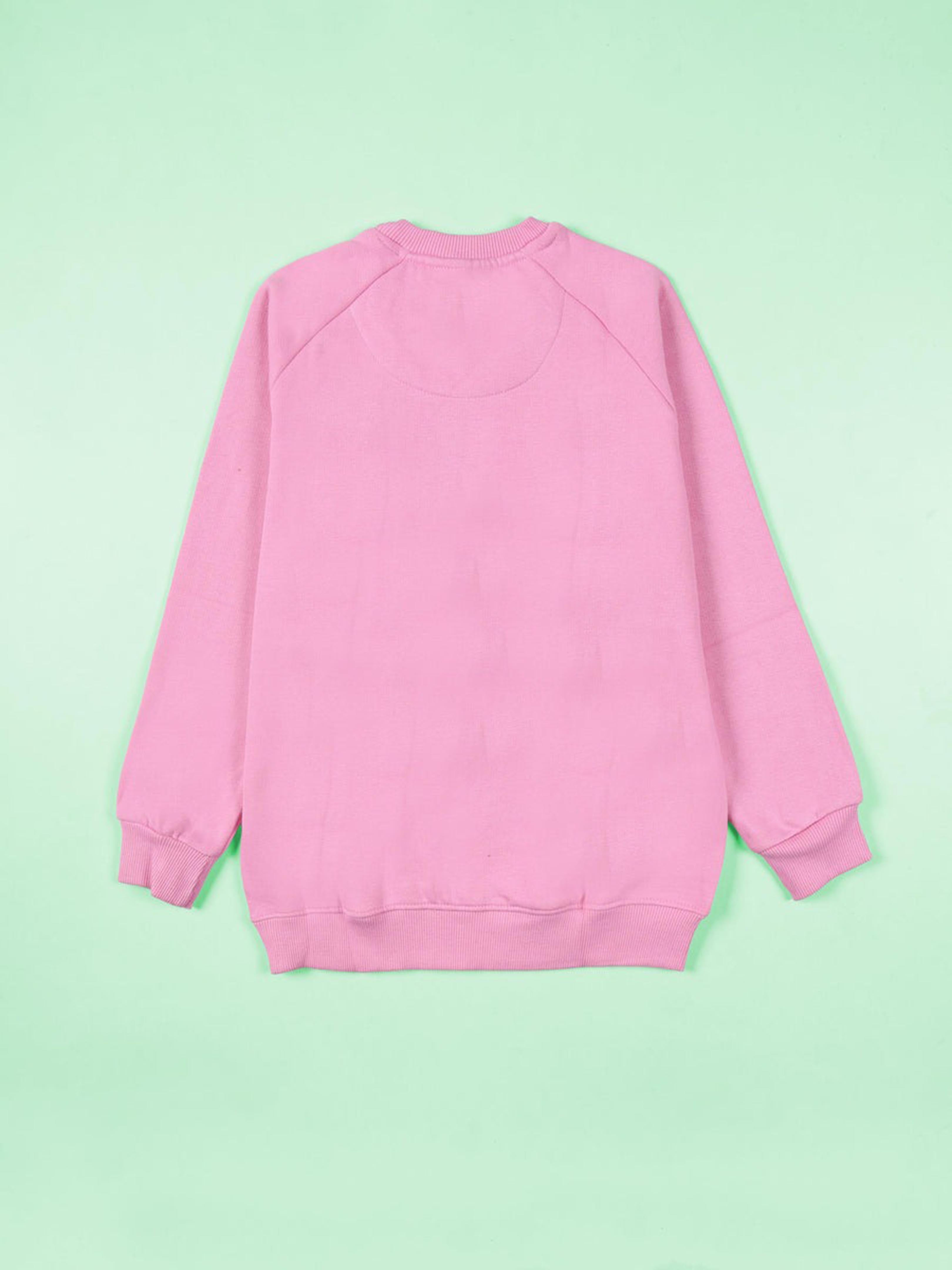 Girls Fleece Raglan Sleeves Printed With Rhinestones Detailed Sweatshirt & Denim Straight Fit Jeans Co Ord Set
