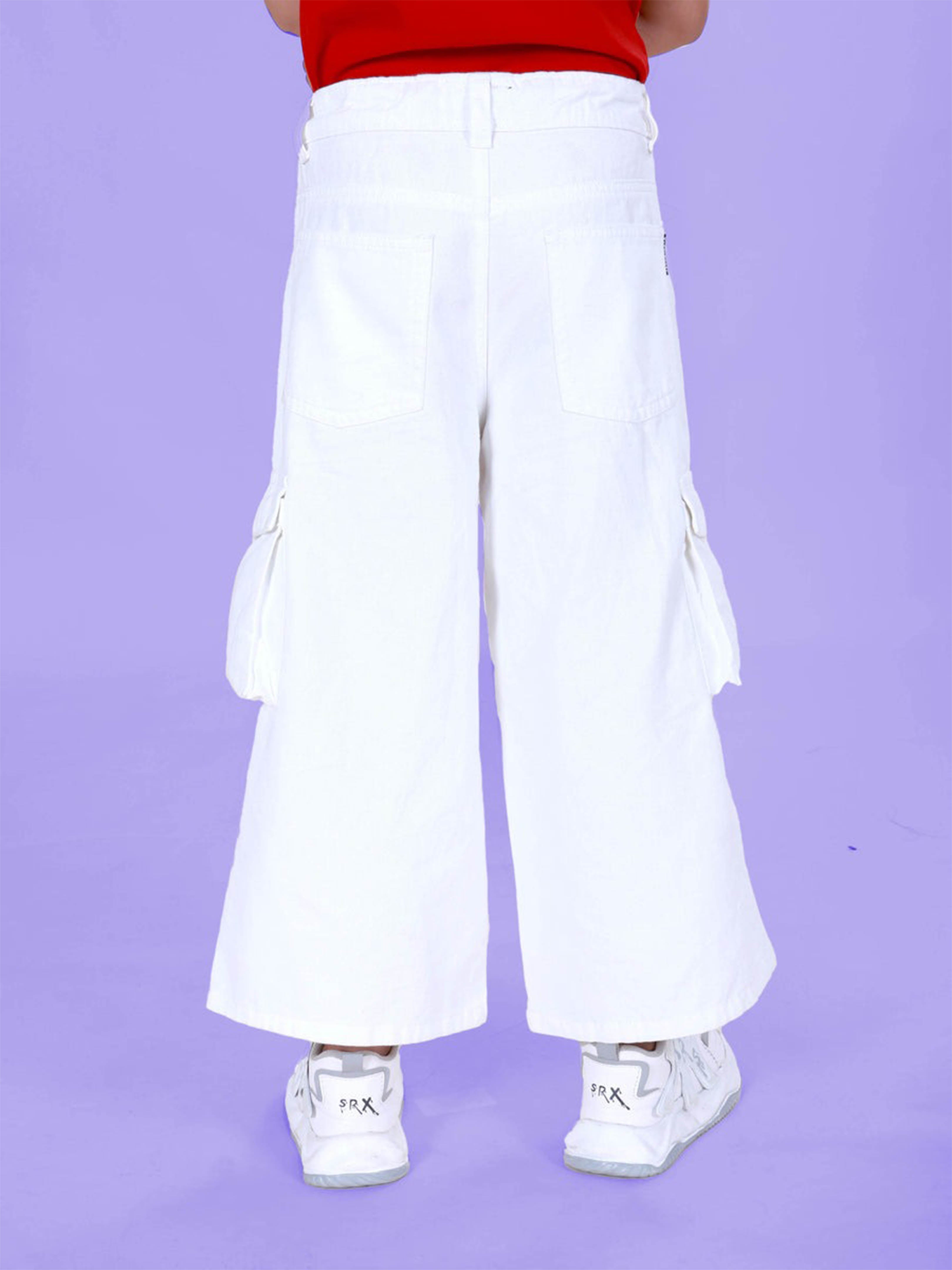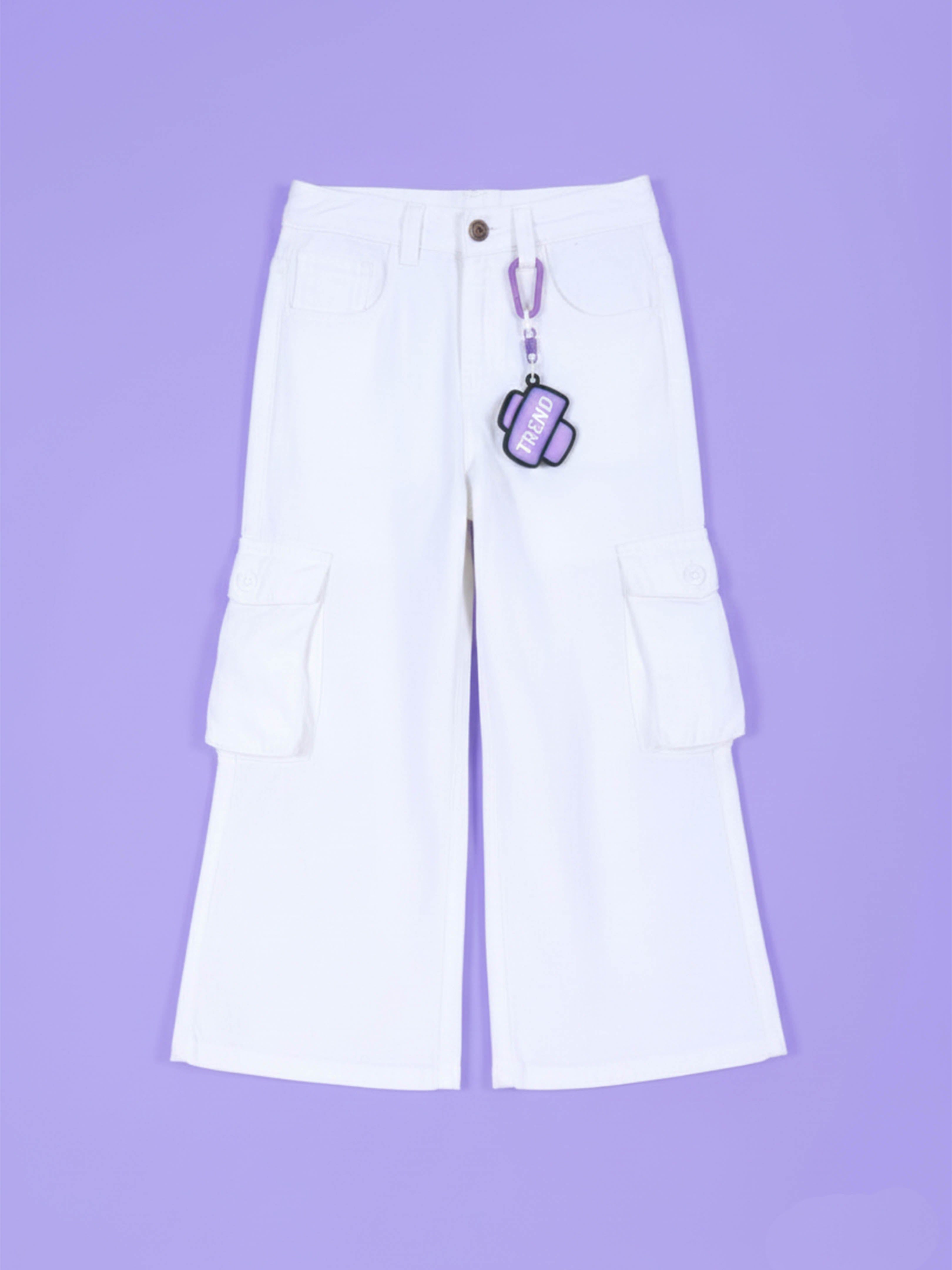 Girls’ Flared Utility Cargo Denim with Lavender Keychain