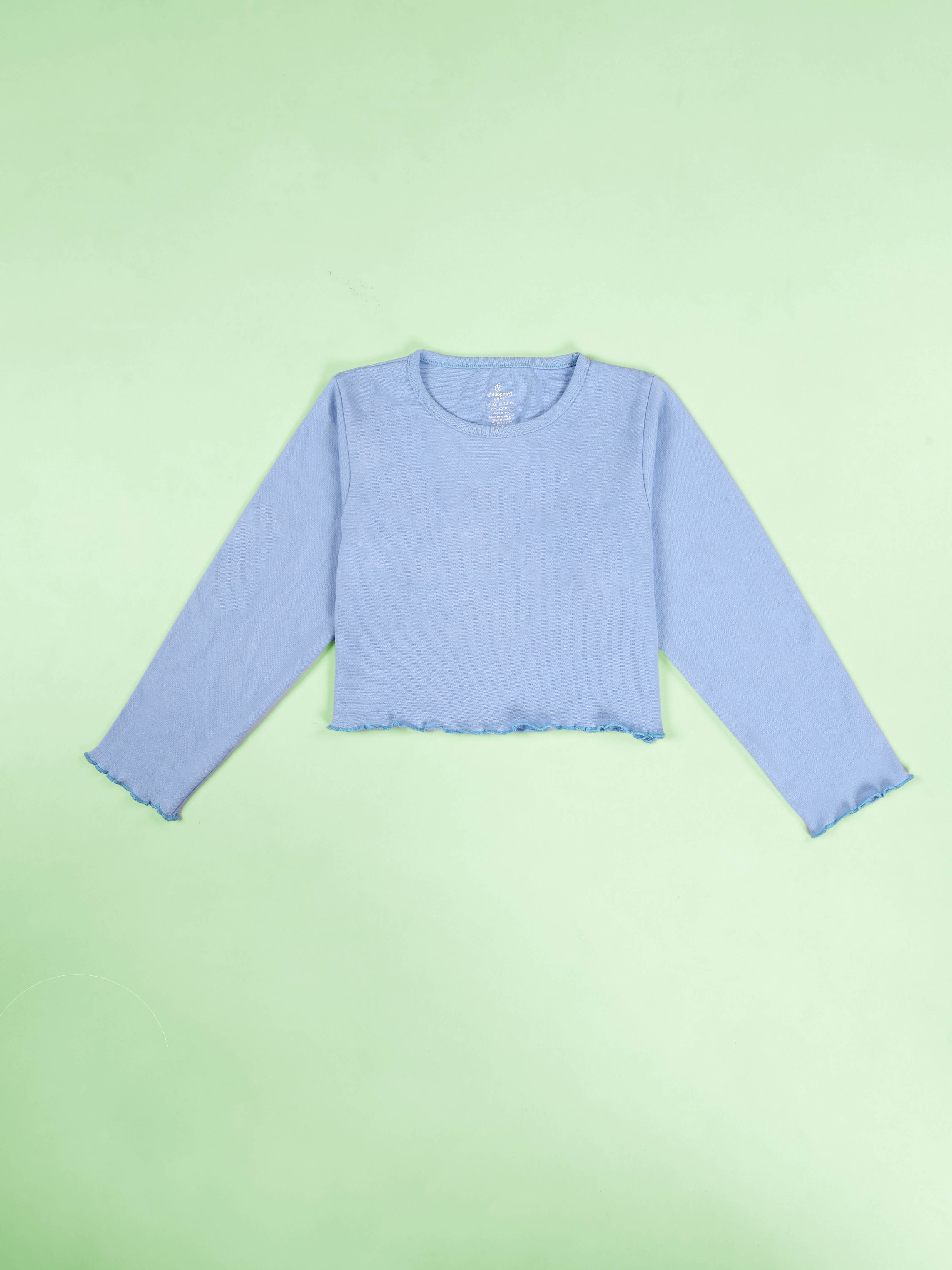 Kiddopanti Girls Cotton Solid Crop Length Round Neck Full Sleeve Tee