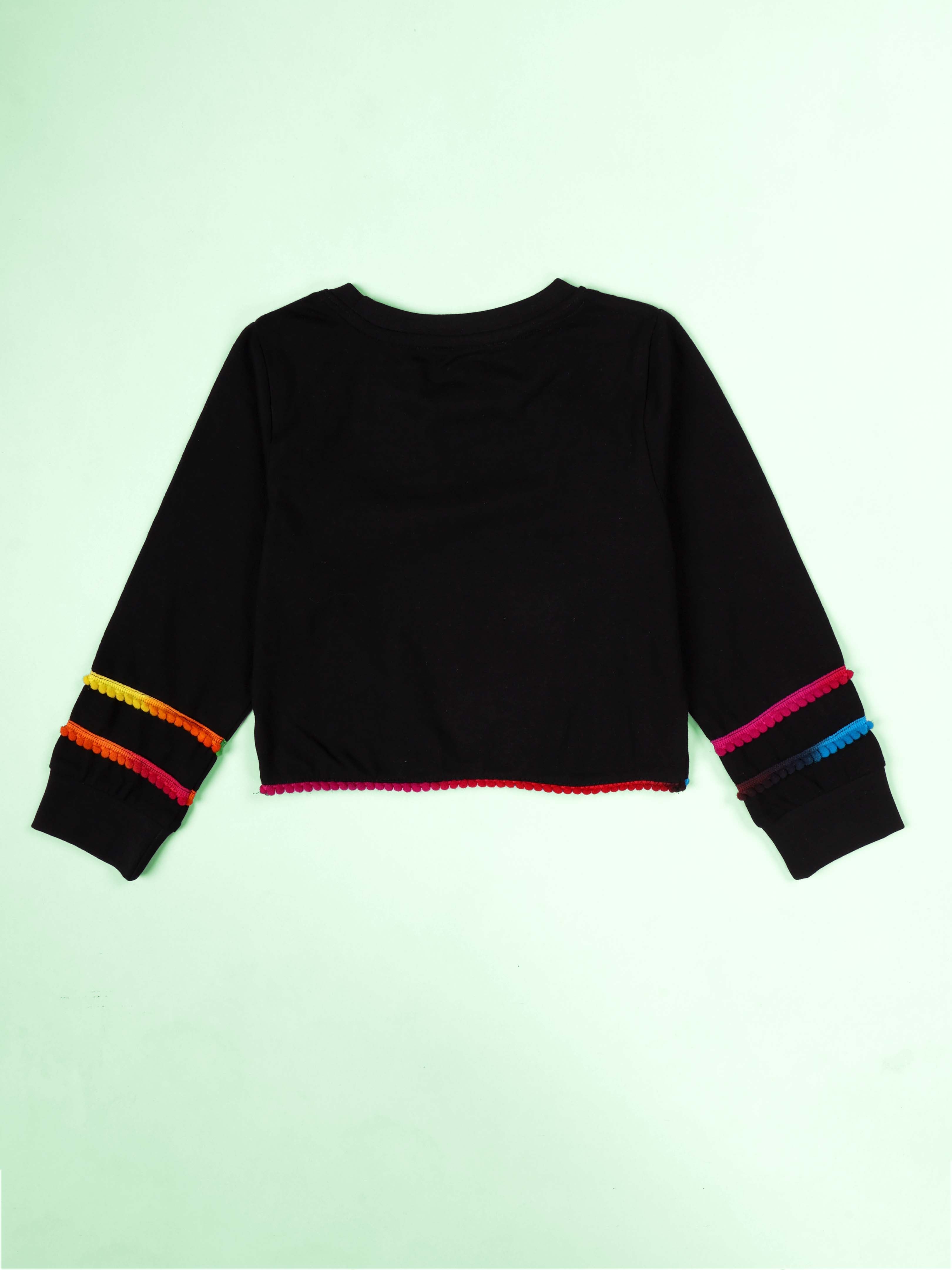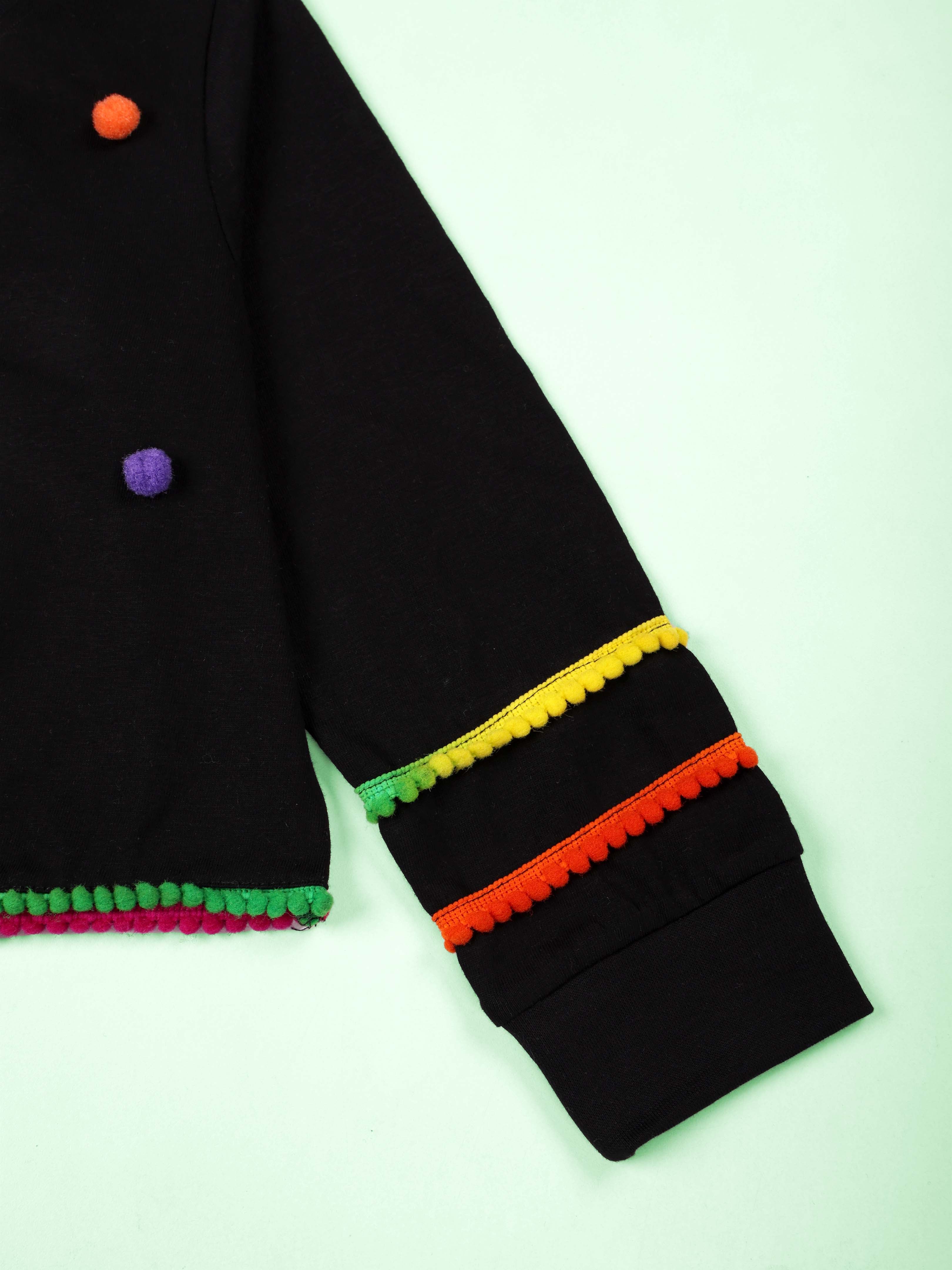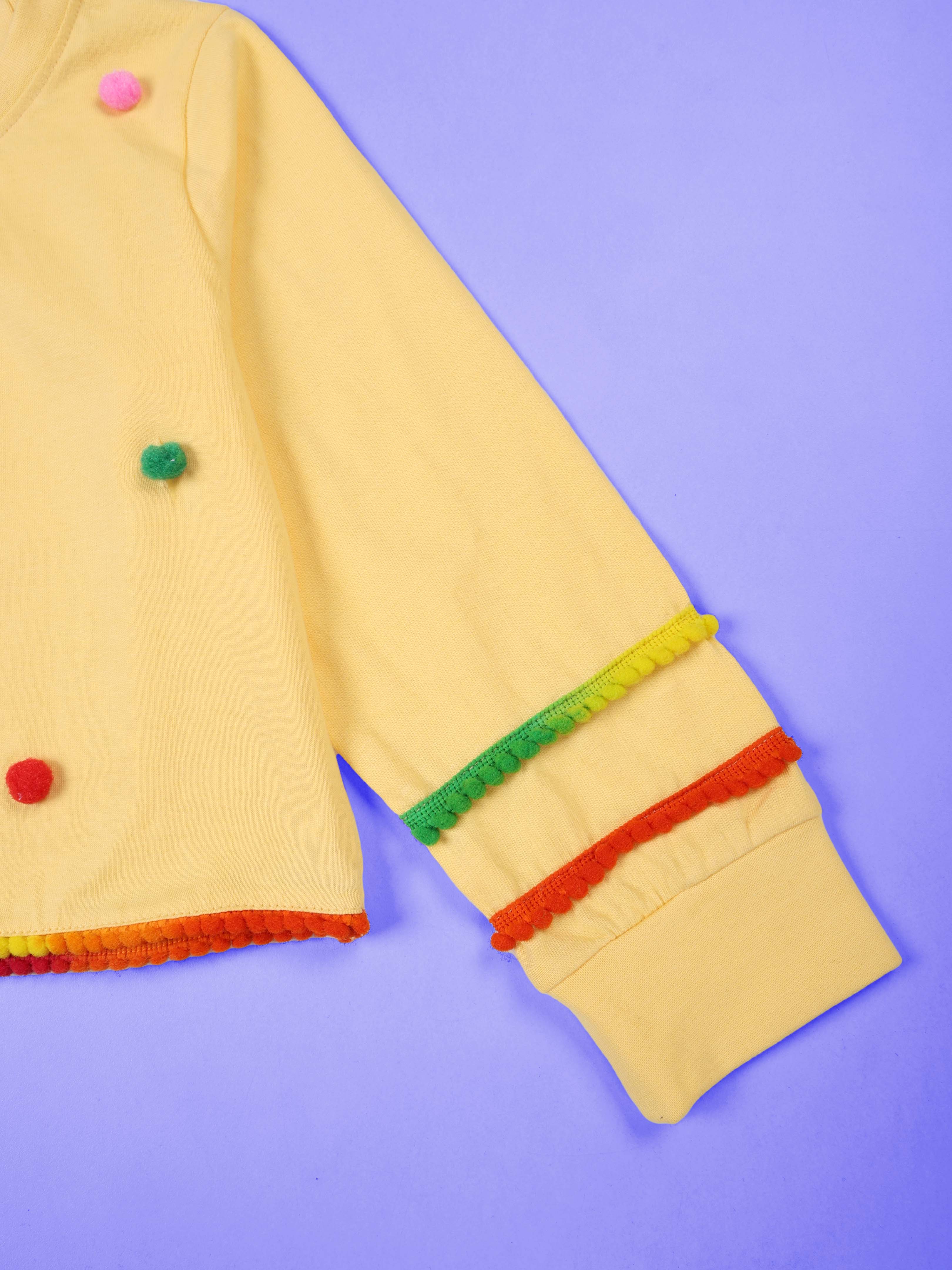 Kiddopanti Cotton Knit Full Sleeves Pom Pom Detailed Crop Length Tee