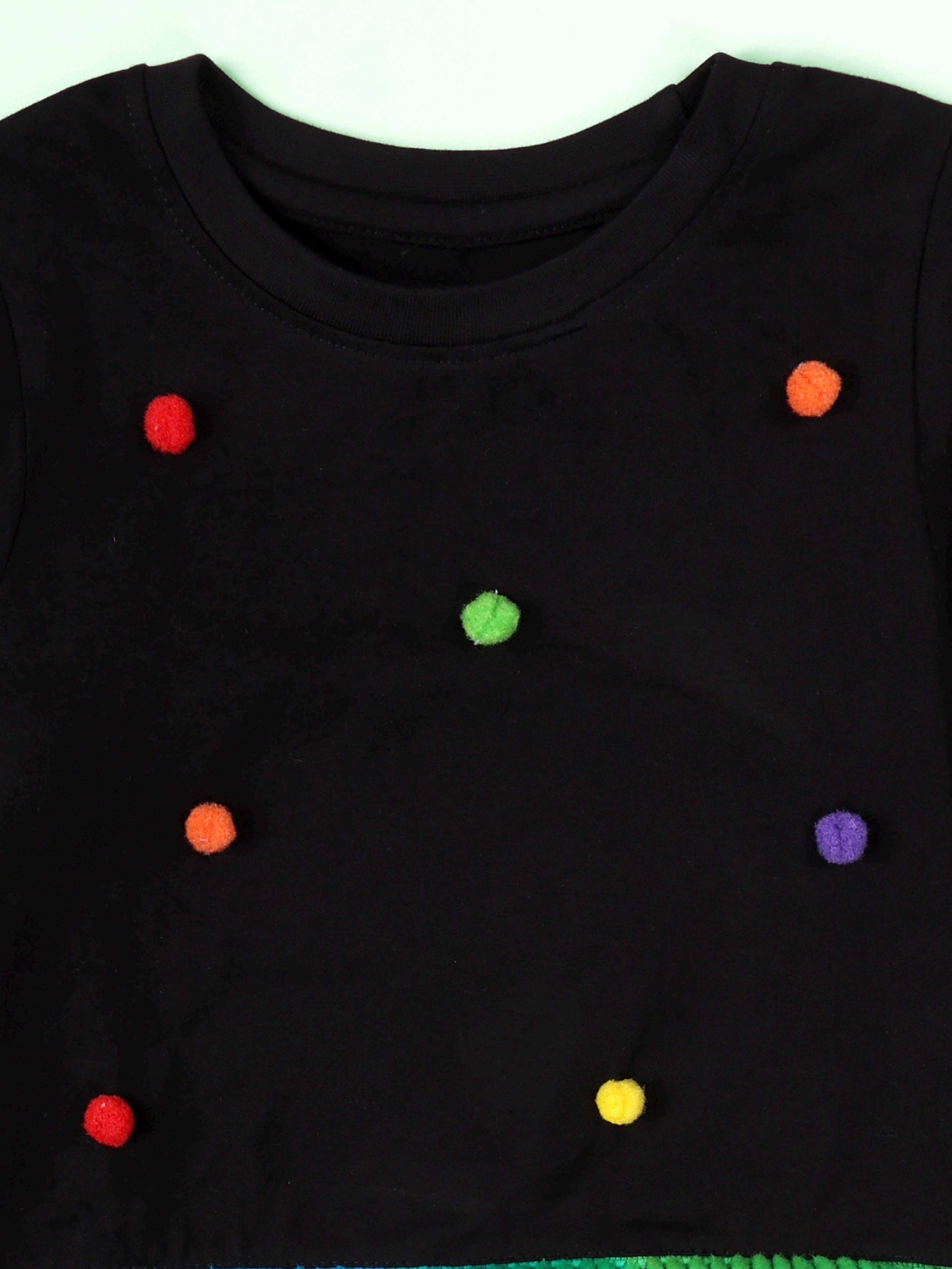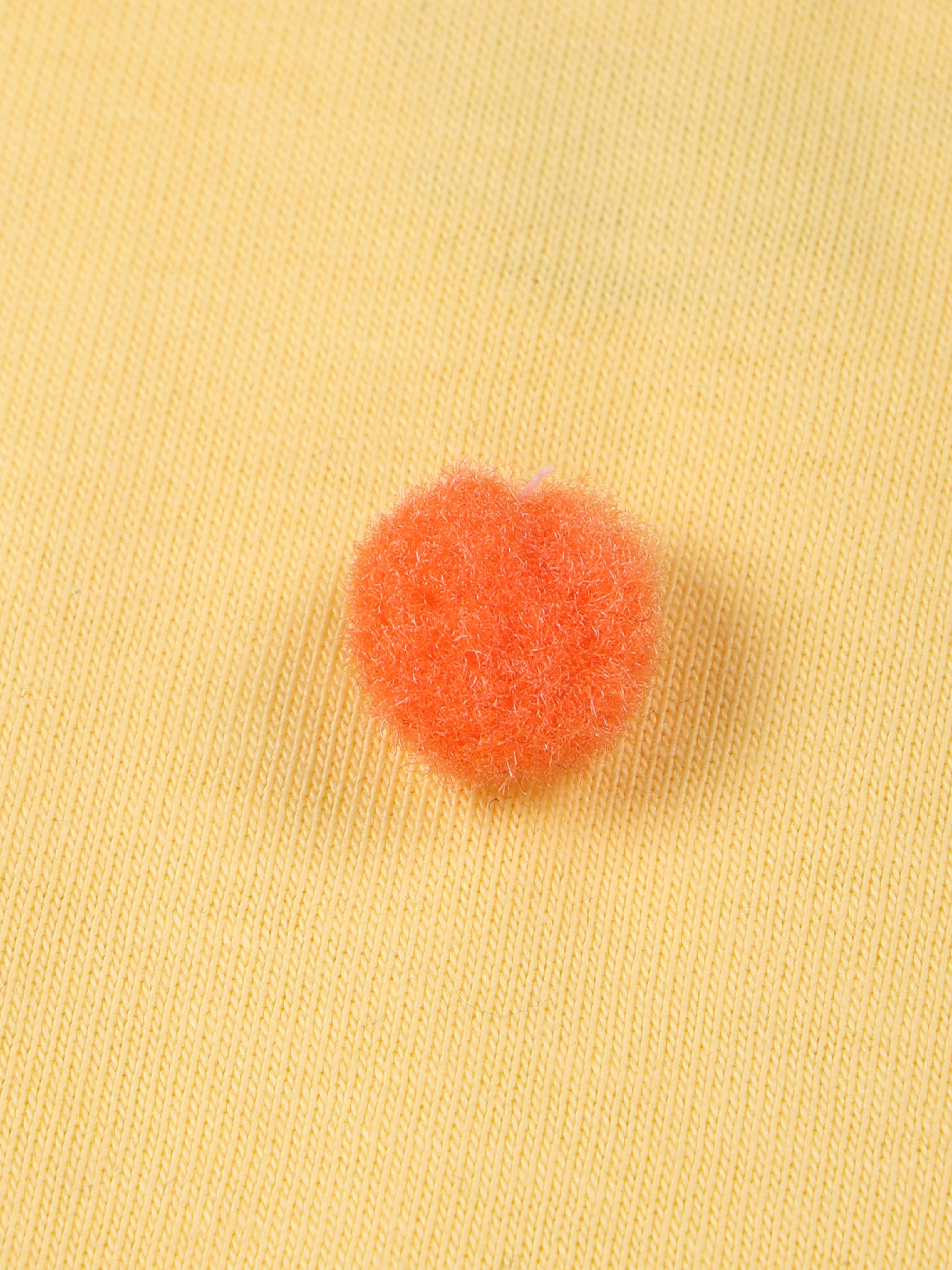 Turn everyday into a celebration with Kiddopanti’s Pom-Pom Party Top! This crop length full-sleeve top bursts with playful personality, featuring multicolored pom-poms scattered across the front and bright trim accents along the sleeves and hem. Designed to keep little girls comfy and cheerful, it’s a stylish pick for school events, birthday parties, or casual outings where she wants to shine. Made from soft cotton jersey, this top blends all-day comfort with a bold, happy vibe that kids (and moms) will love.