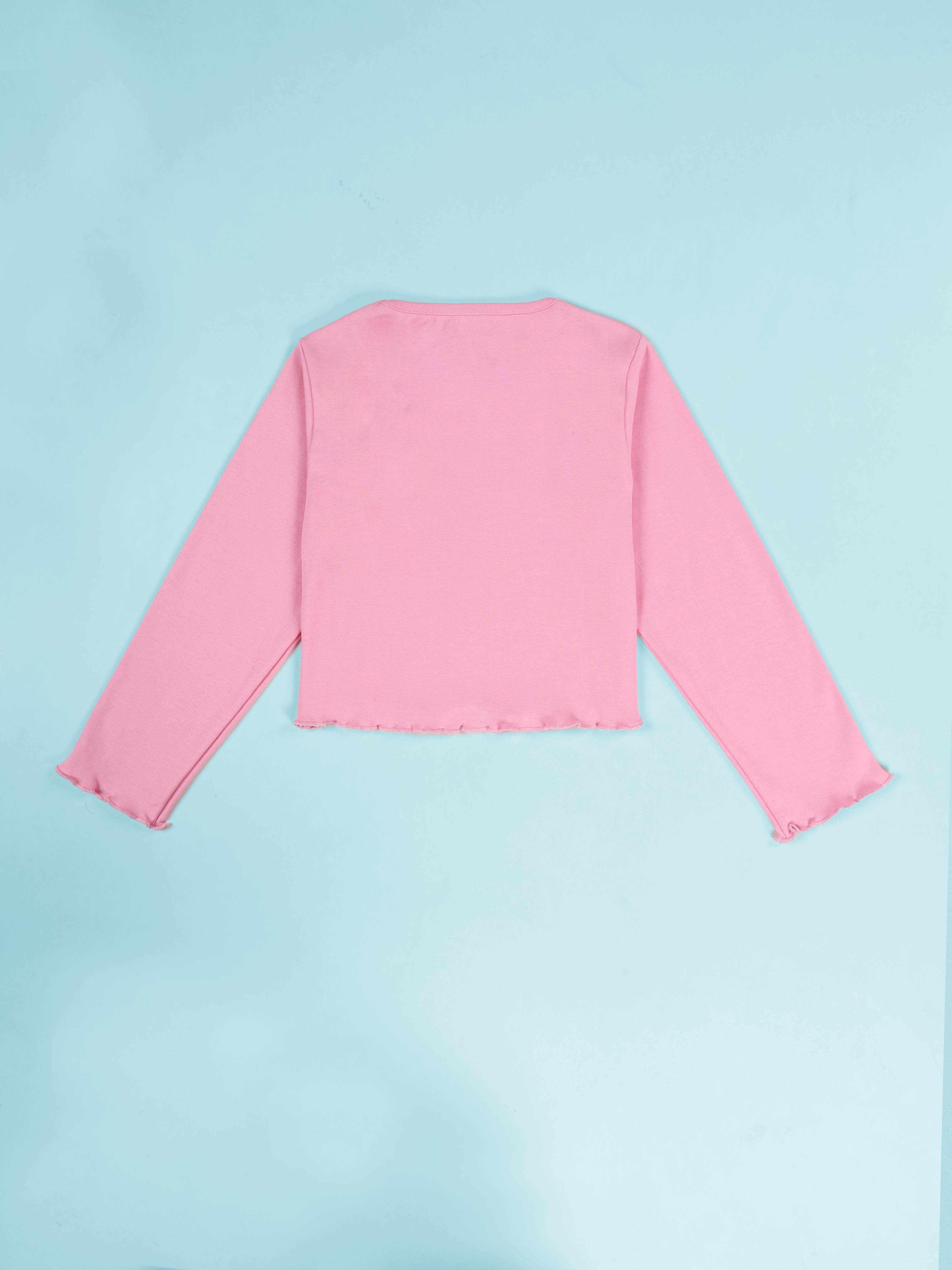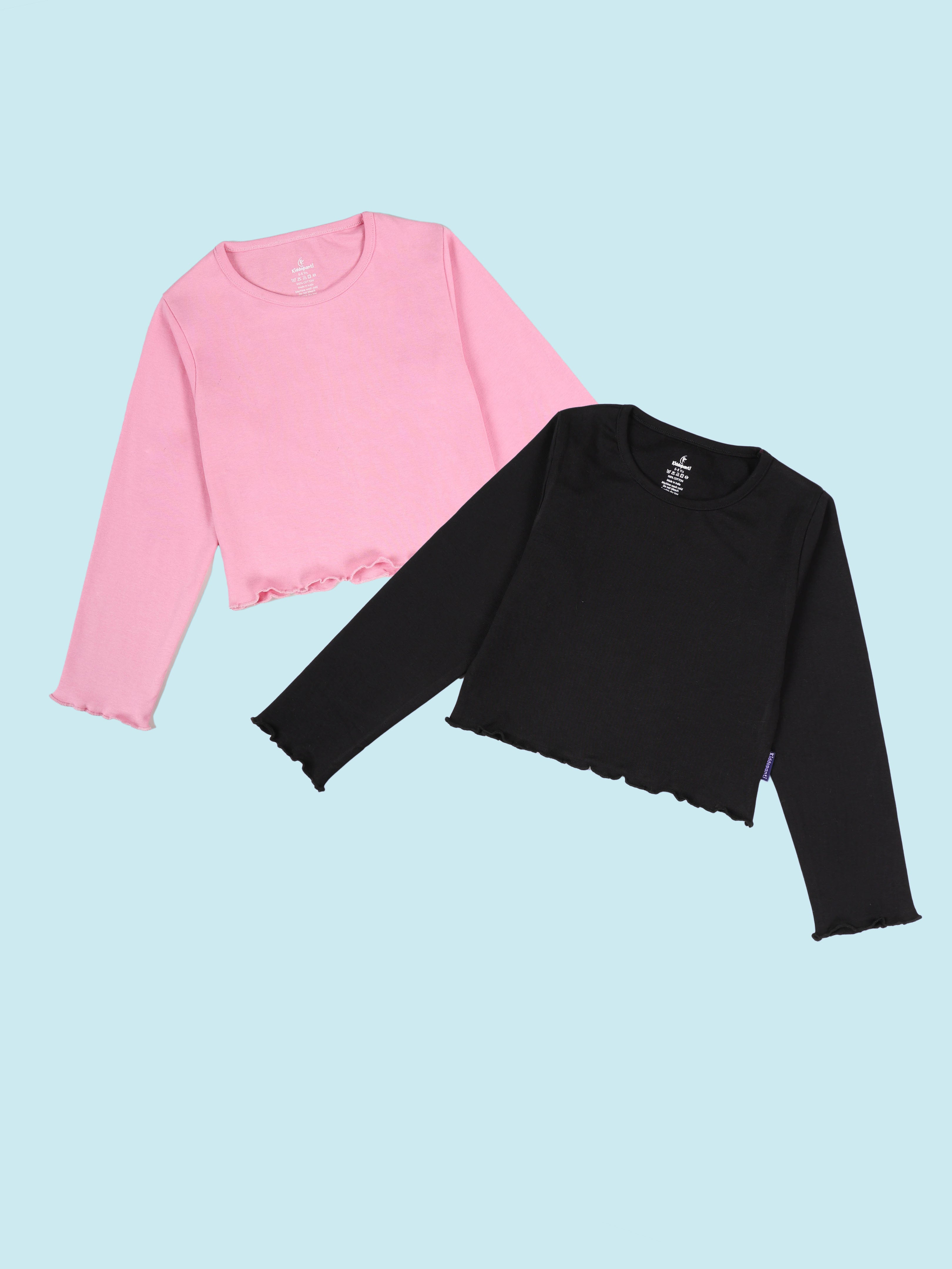 KiddoPanti Girls Cotton Rib Solid Full Sleeve Round Neck Crop Tee Pack of 2