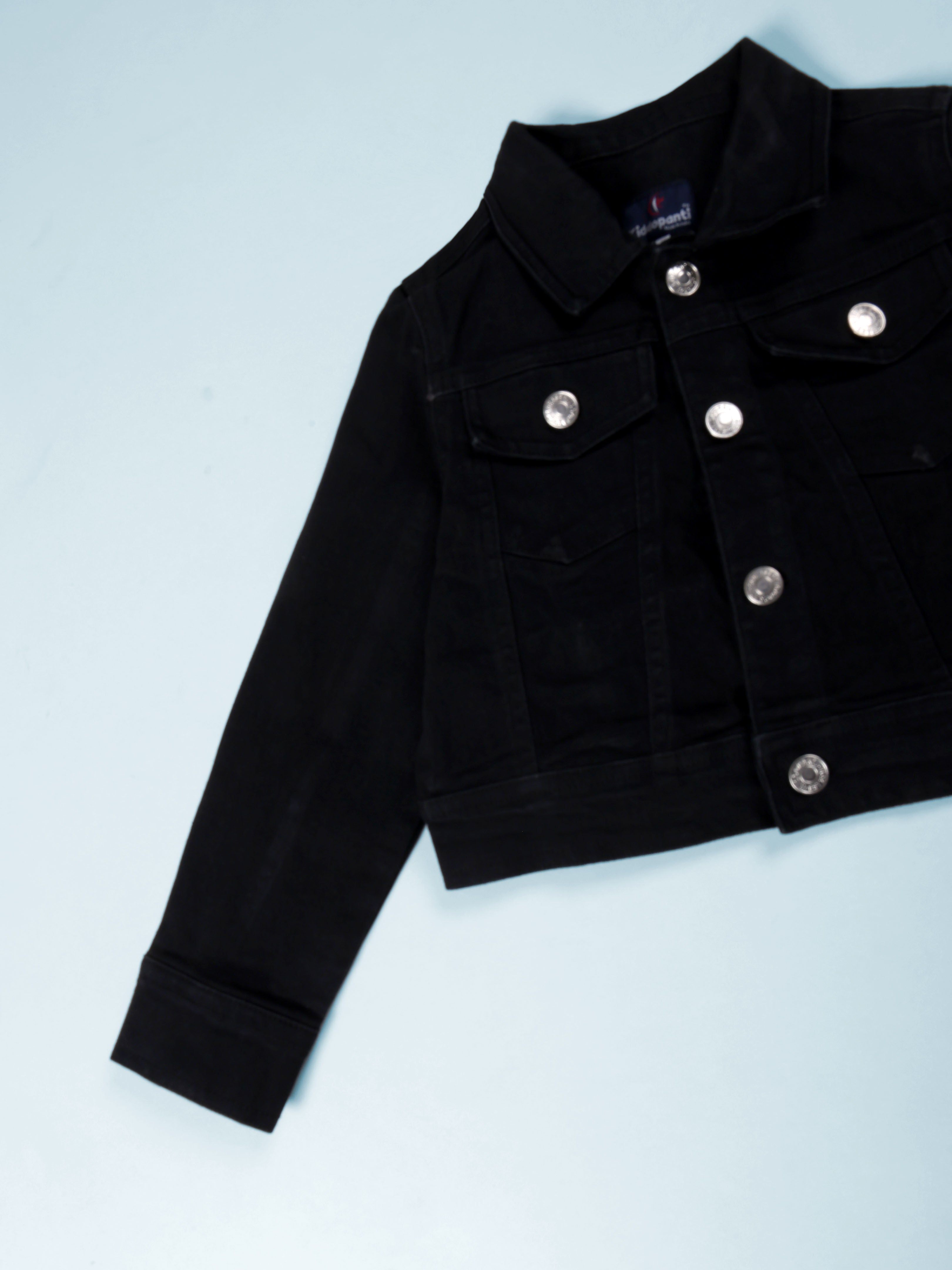 Girls Cotton Denim Full Sleeves Solid Crop Jacket