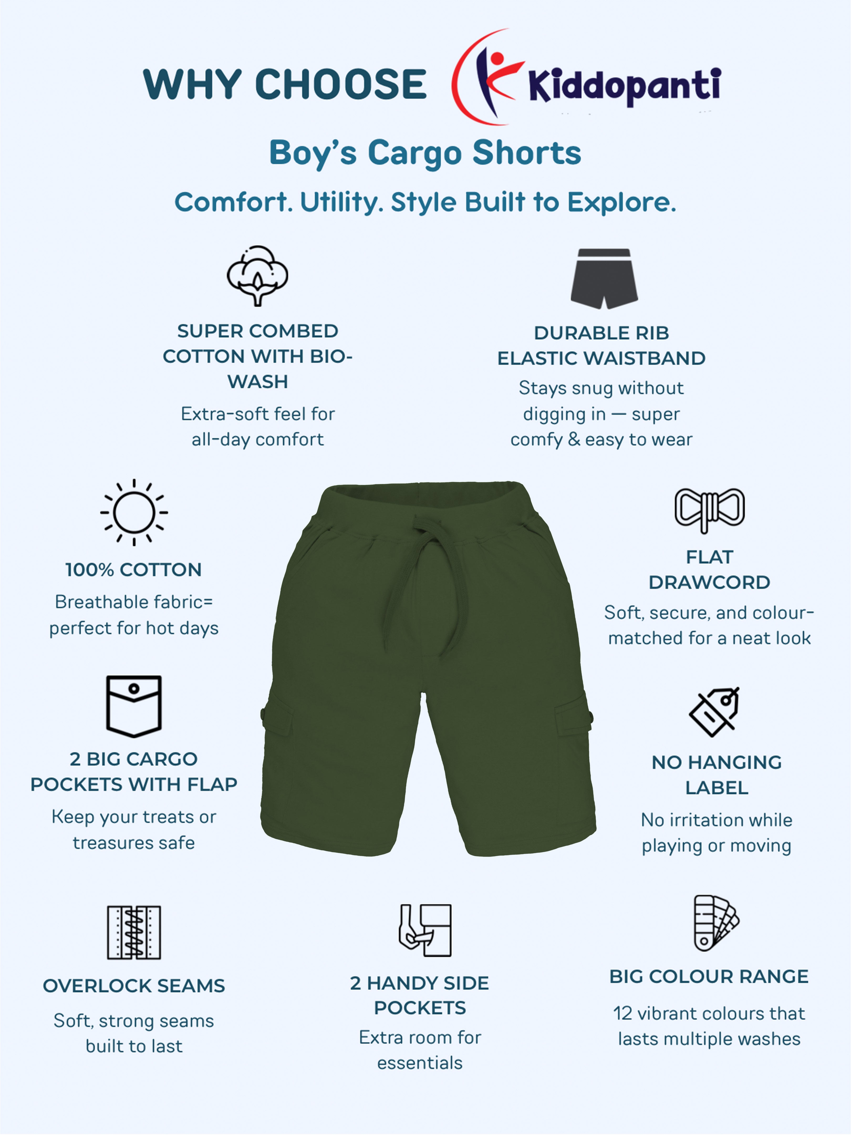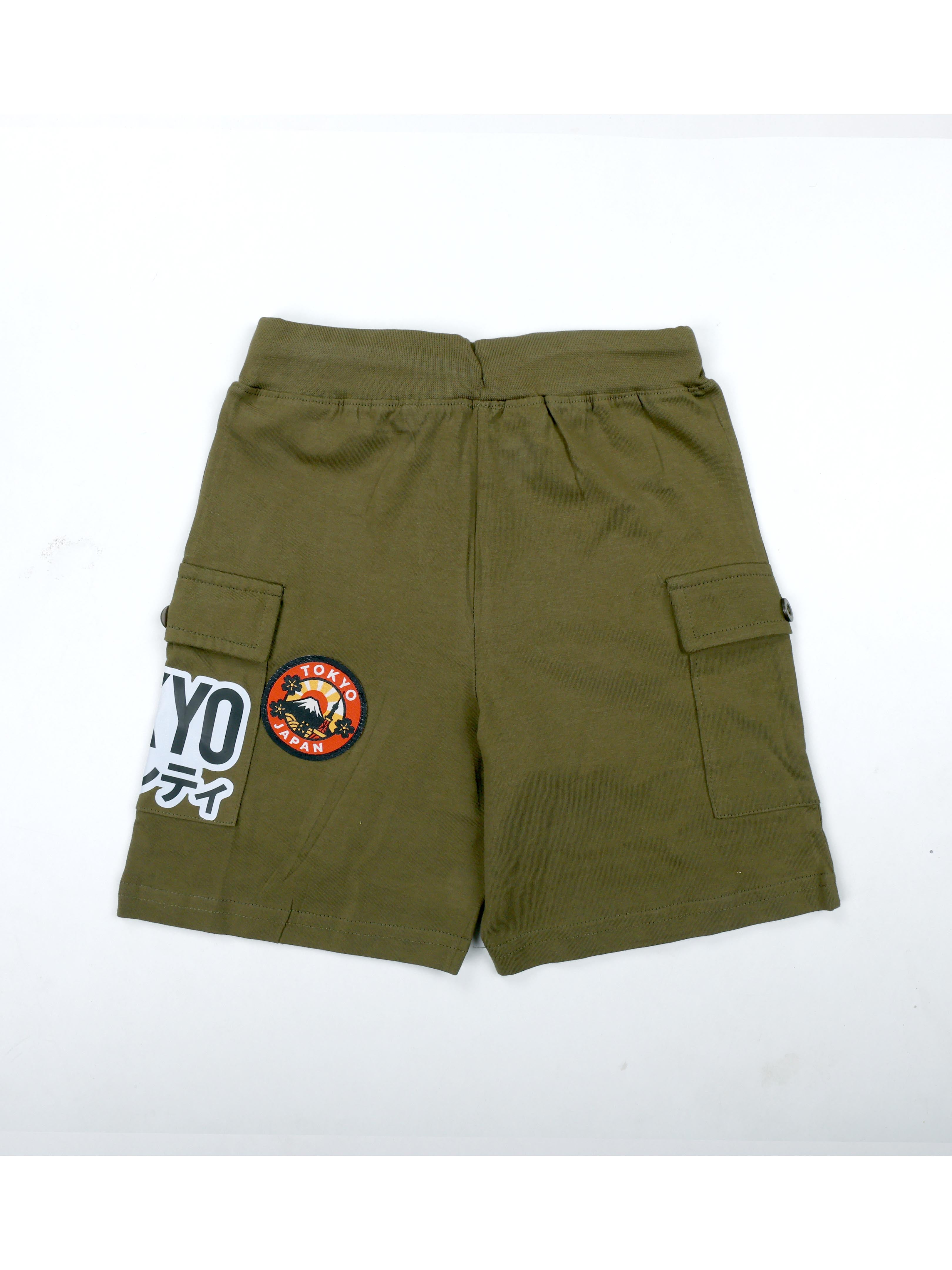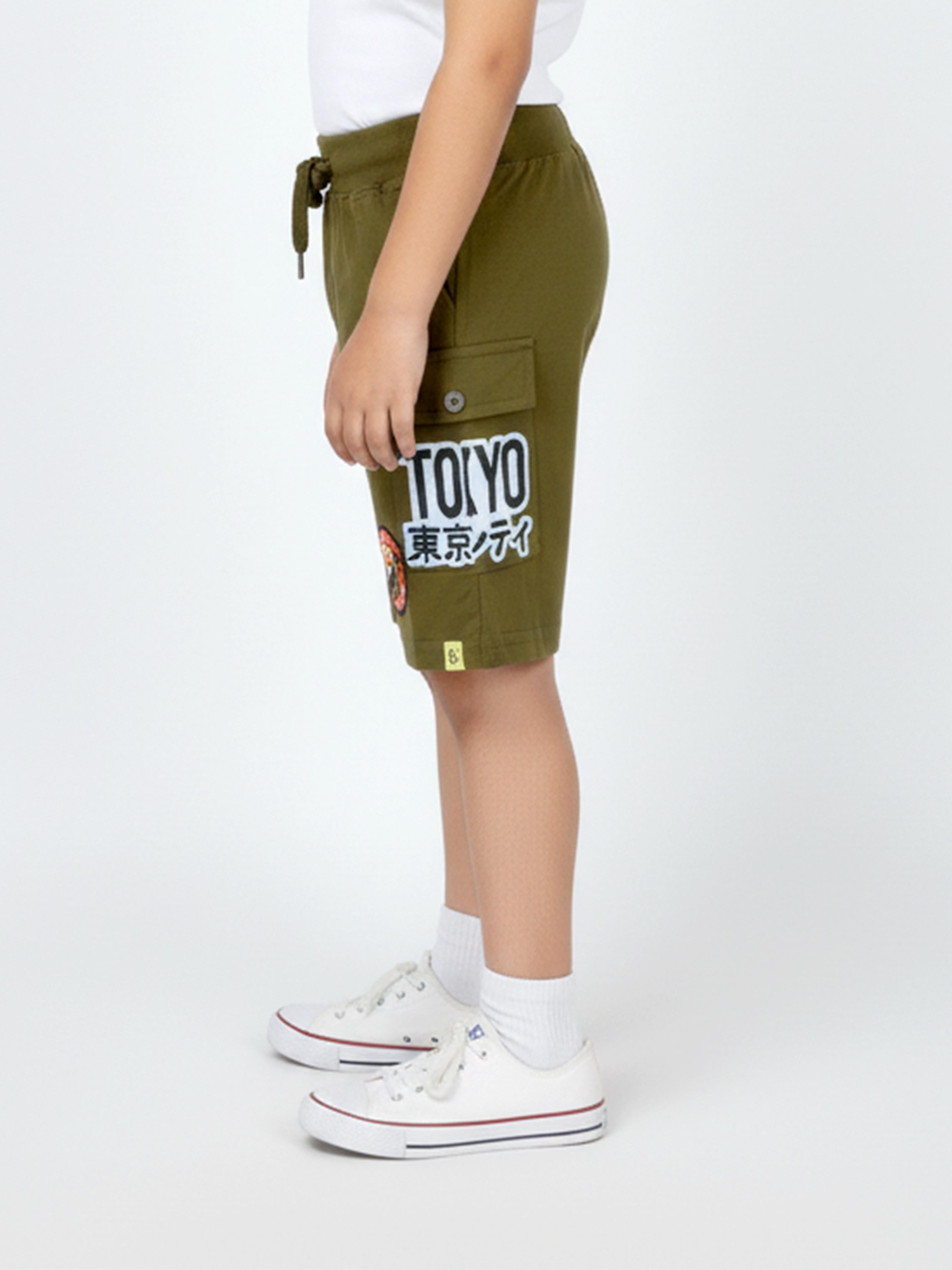Kiddopanti Boys Cotton Basic Cargo Knit Shorts With Tokyo Japan Themed Badges and Prints