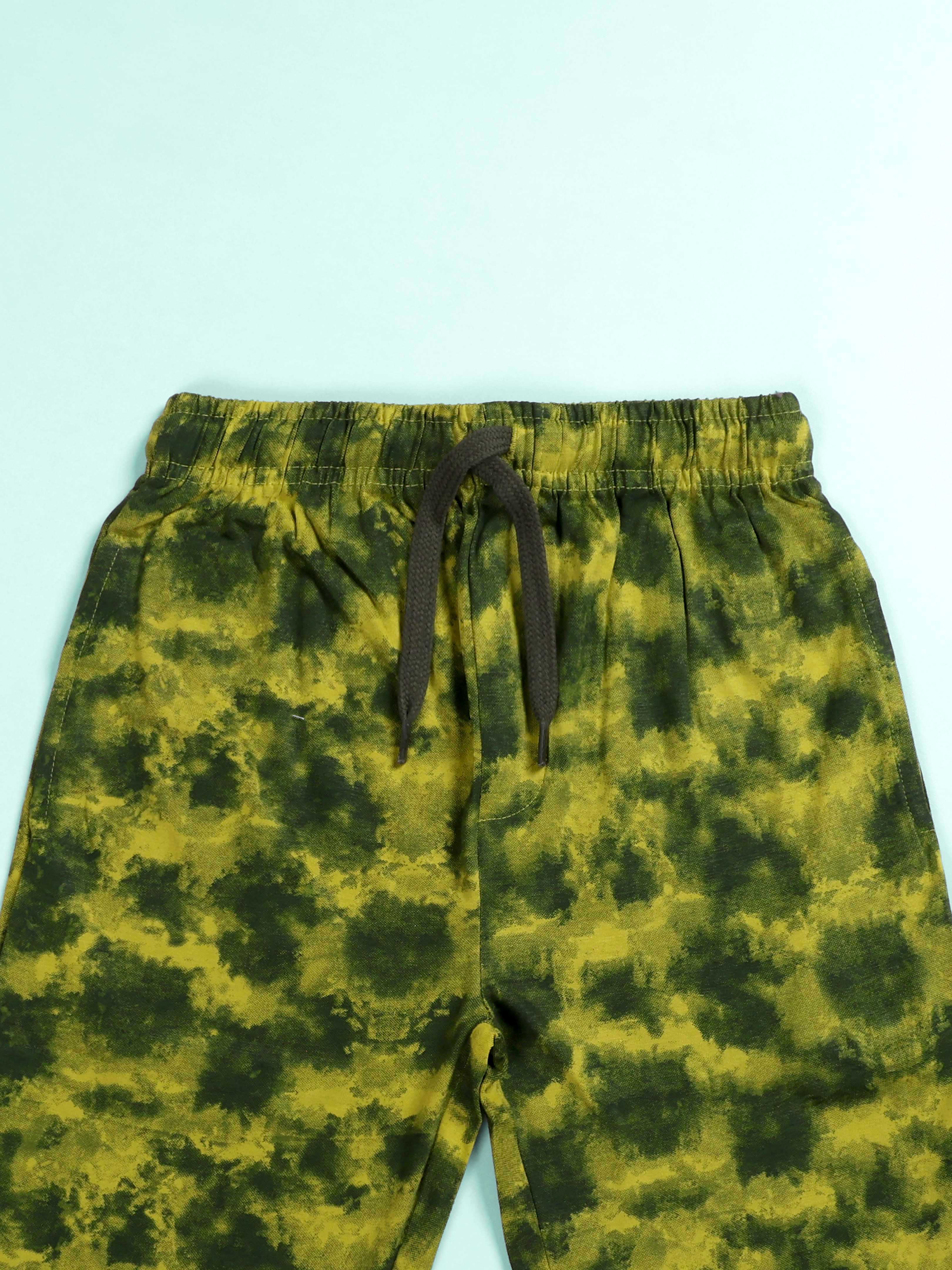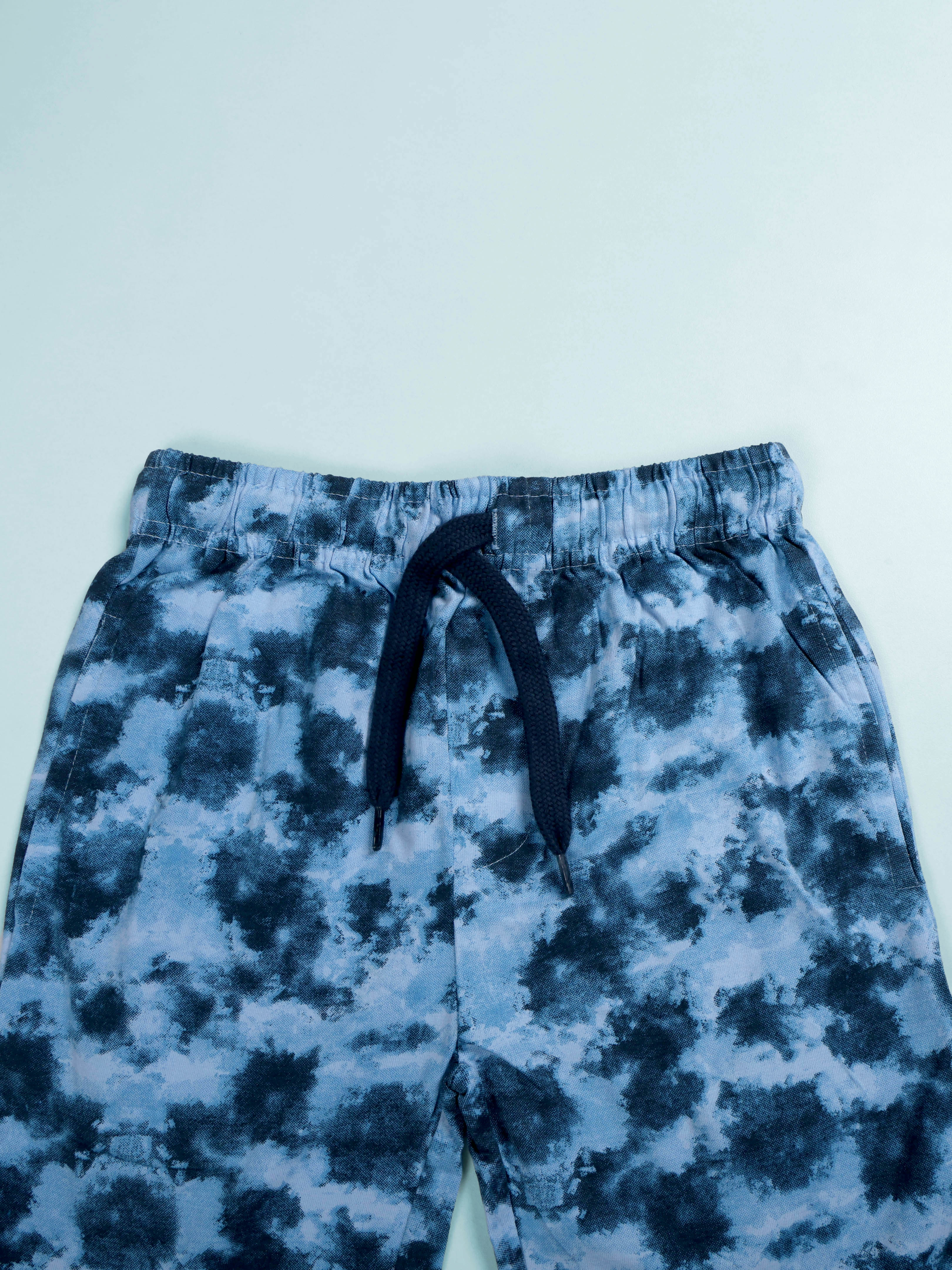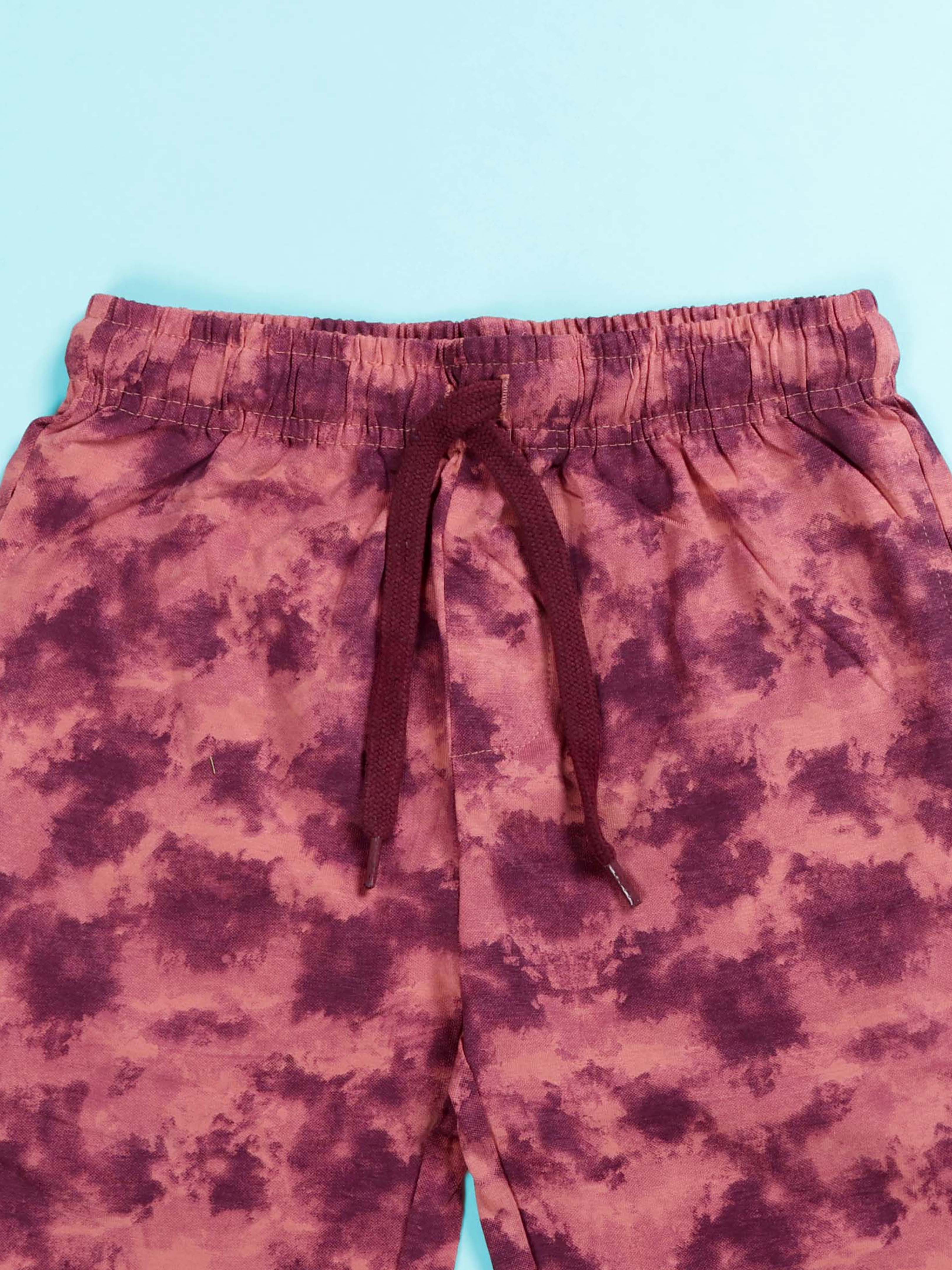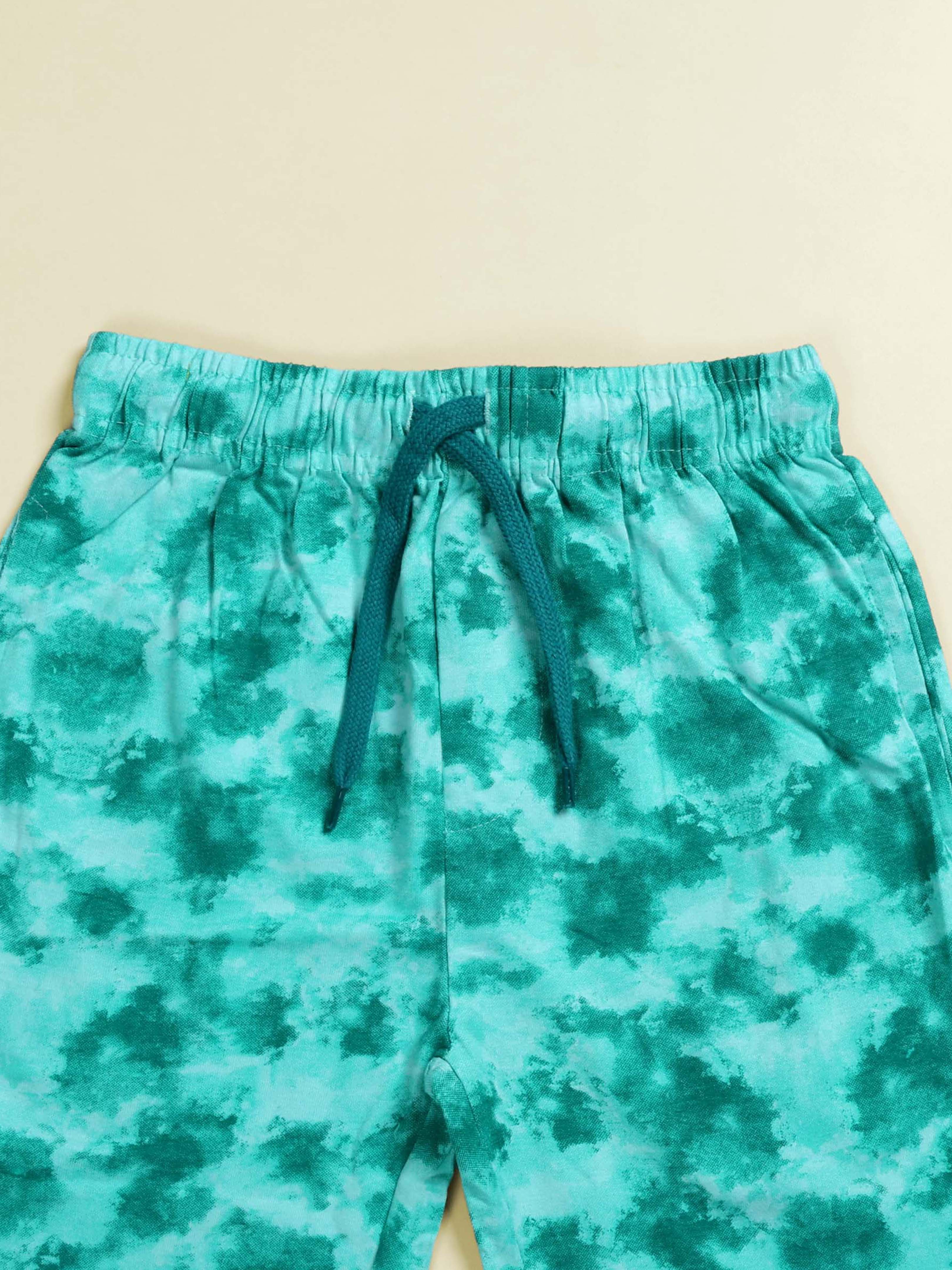 Kiddopanti Boys Cotton Tie & Dye Printed T-Shirt With Chest Print & Knee Length Shorts Set