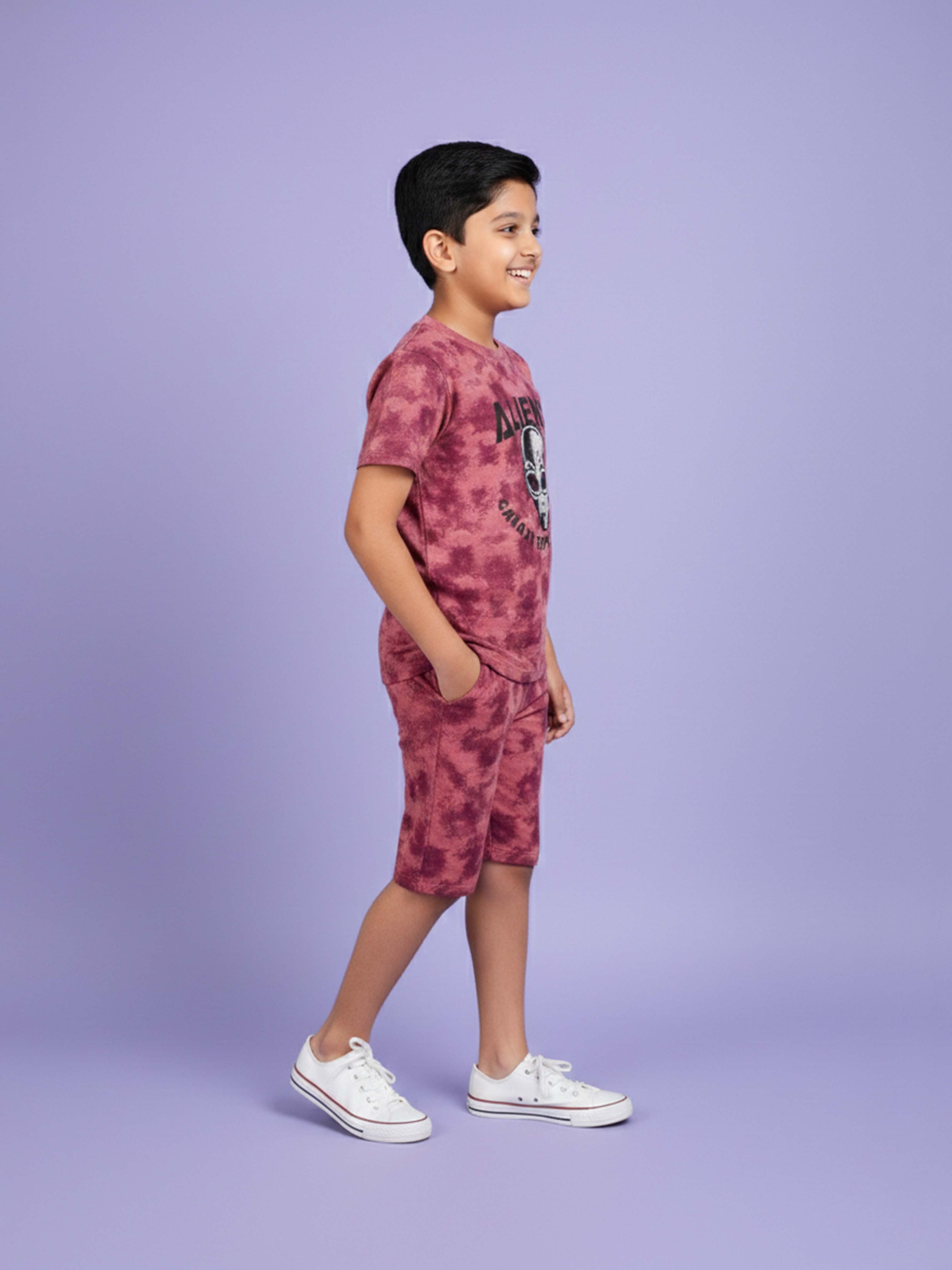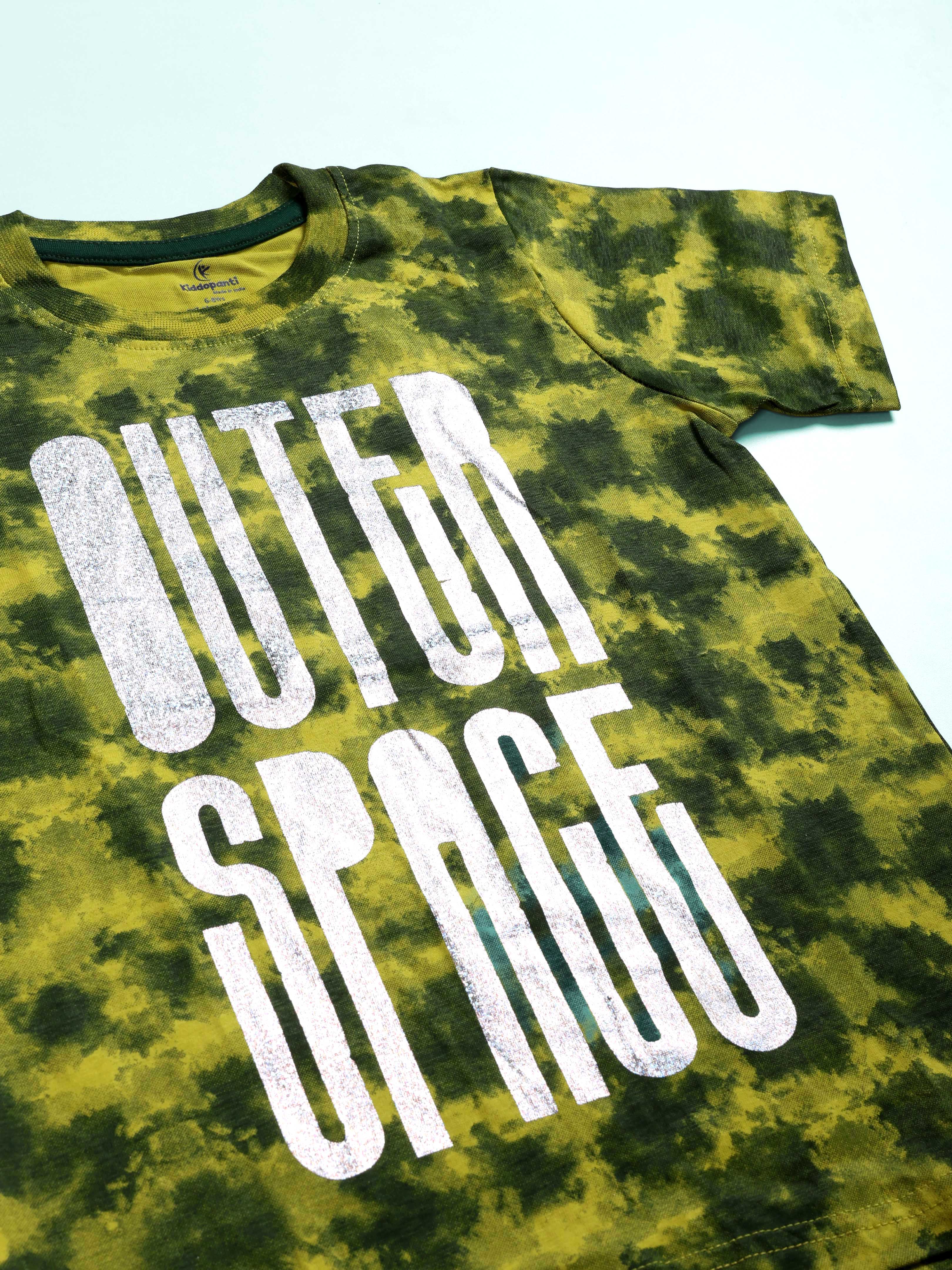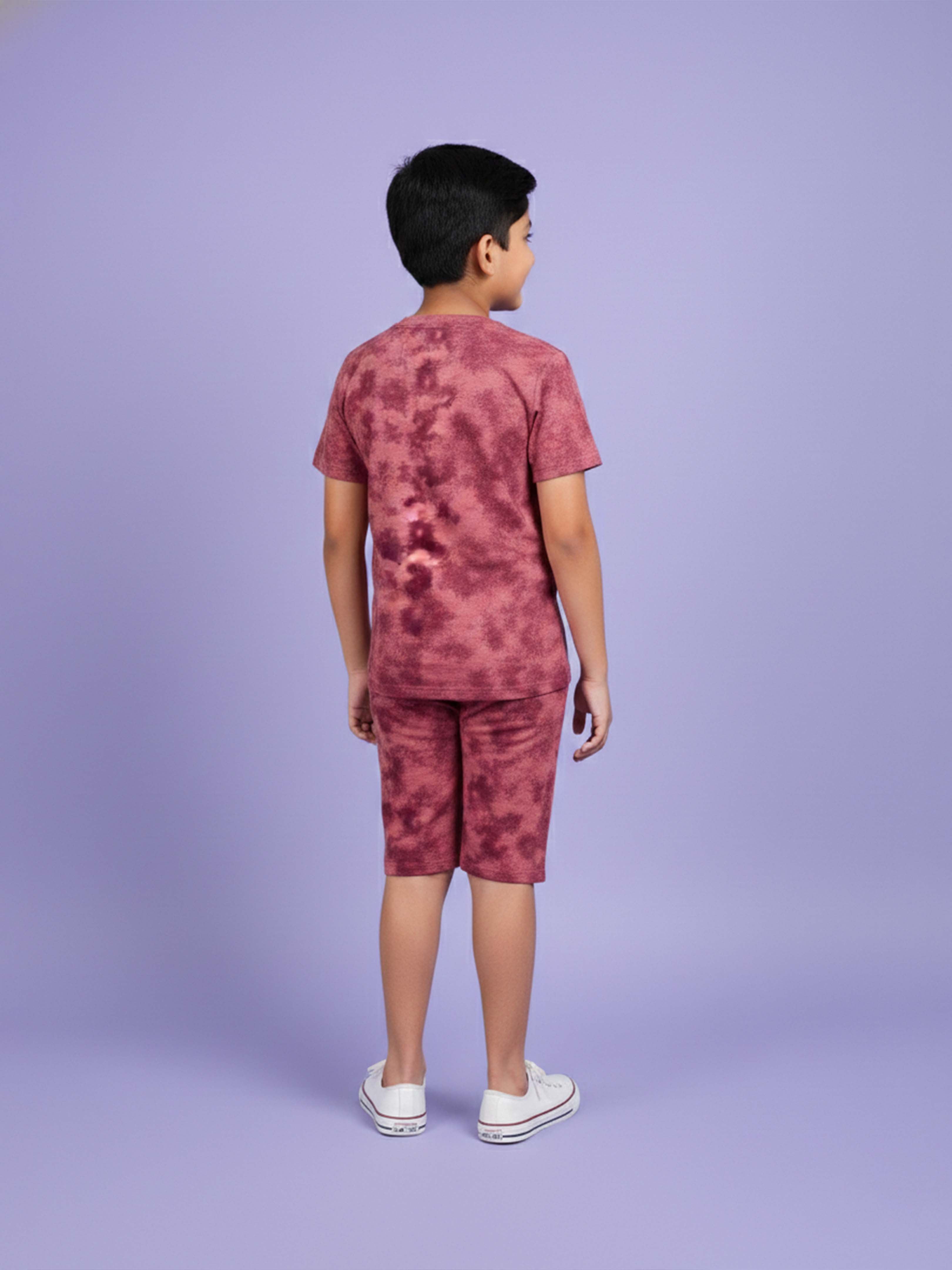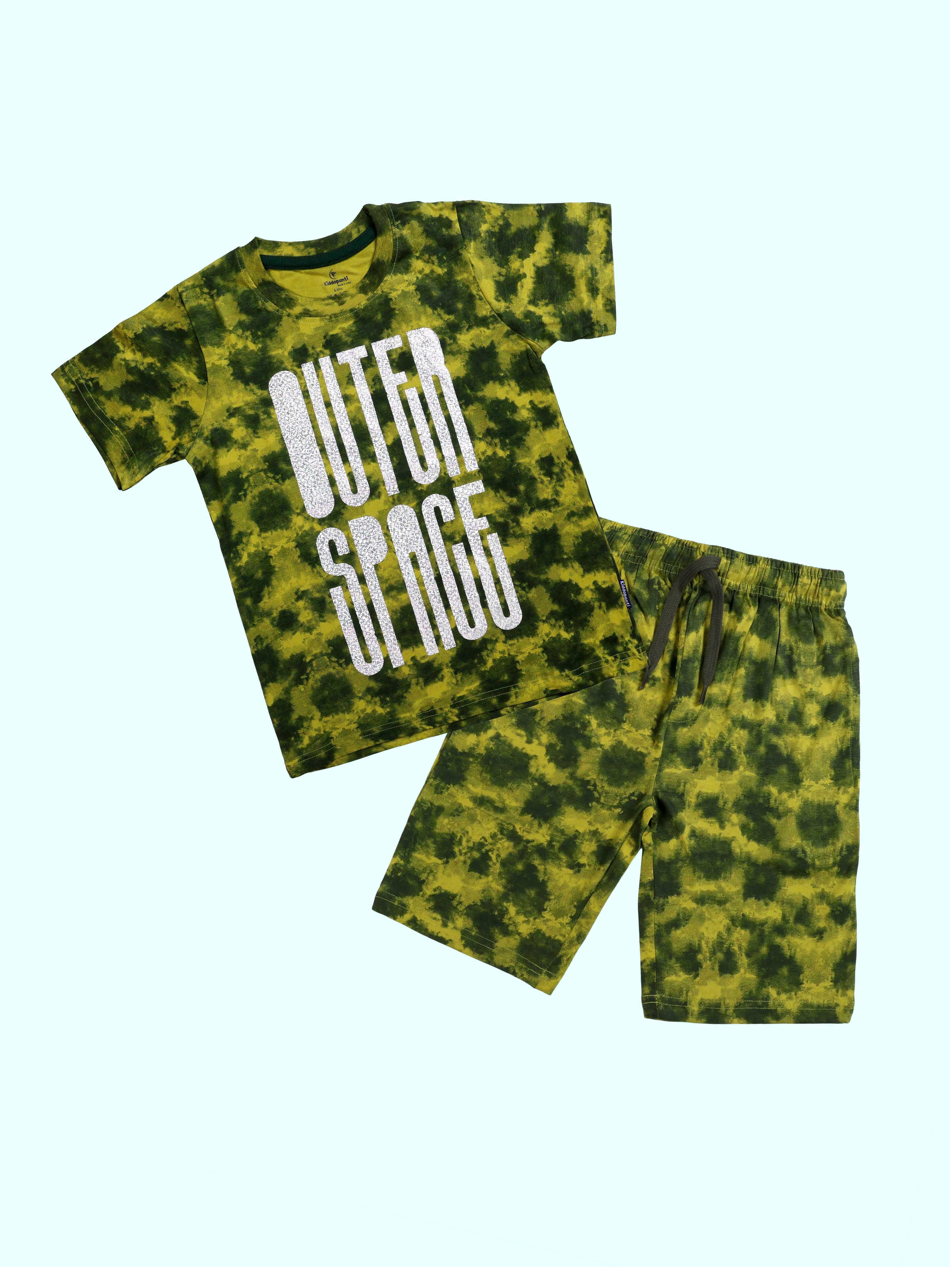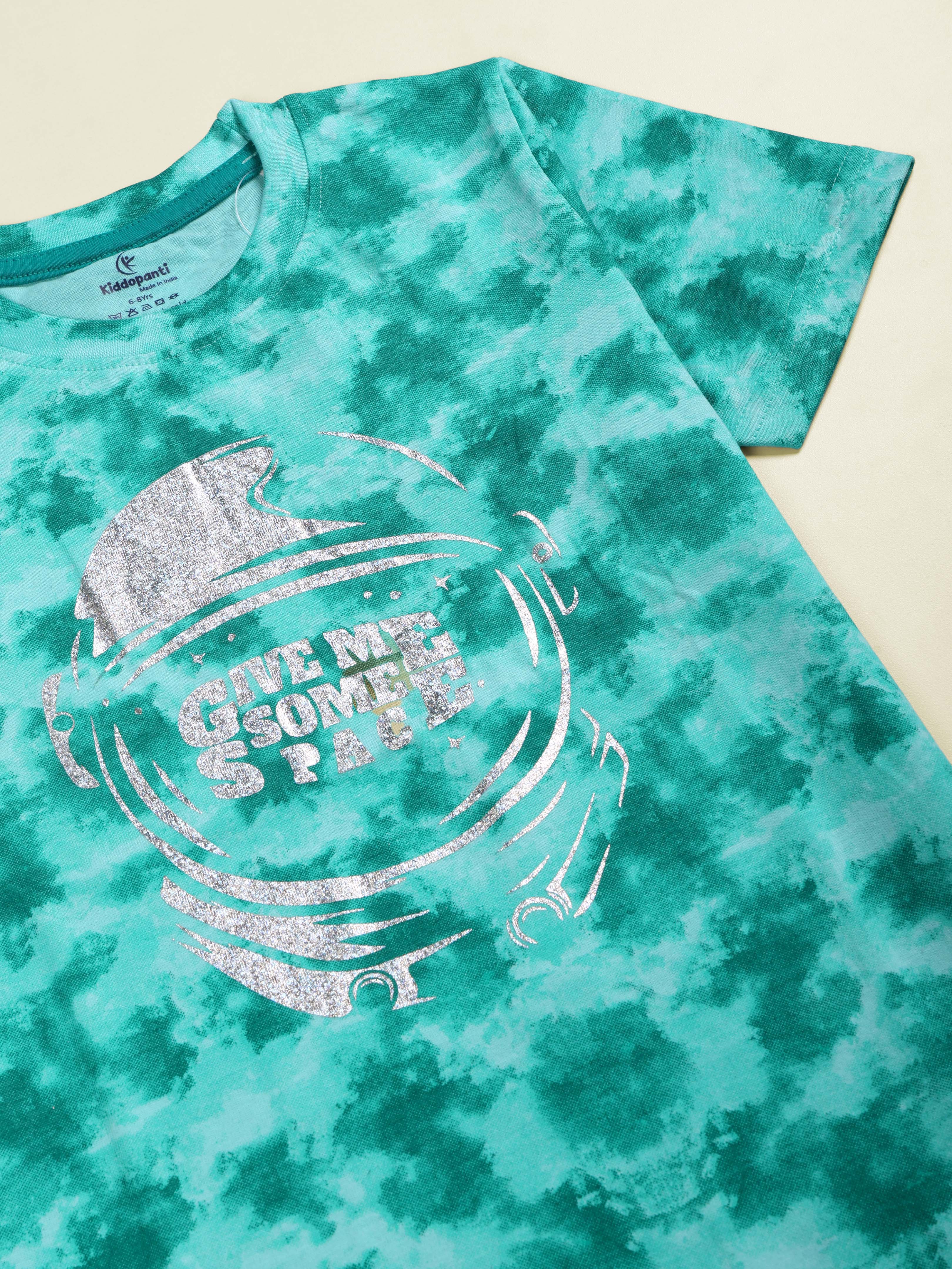 The T-shirt showcases bold space-inspired graphic elements and typography prints, giving it a modern, energetic vibe, while the shorts feature a refreshing all-over tie-dye pattern for a playful and trendy finish. Crafted from soft and breathable cotton fabric, this set ensures all-day comfort, flexibility, and skin-friendly wear — perfect for playtime, casual outings, travel, lounging, and everyday use.