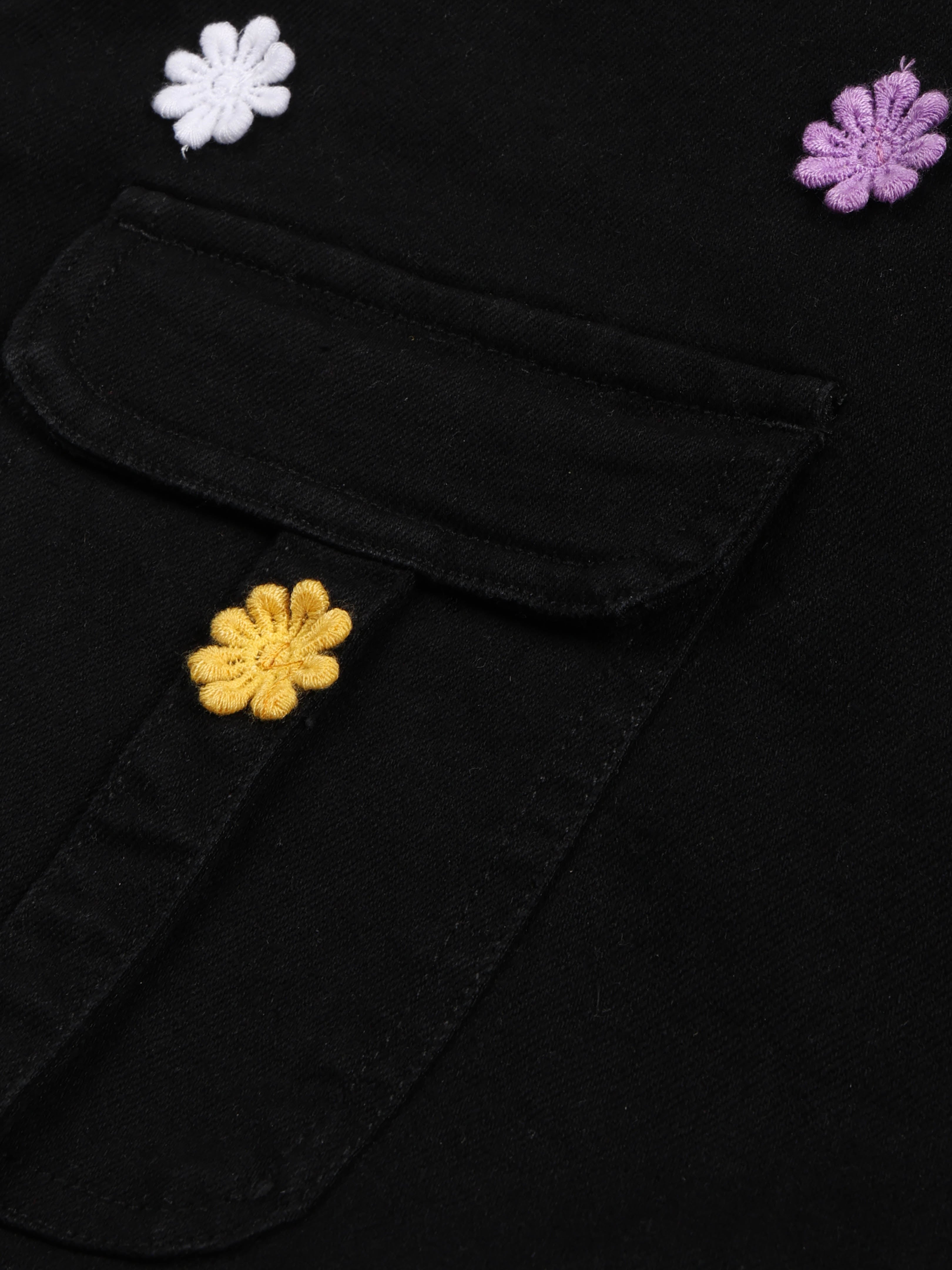 Black Denim with Multicolour Flower Appliqué
