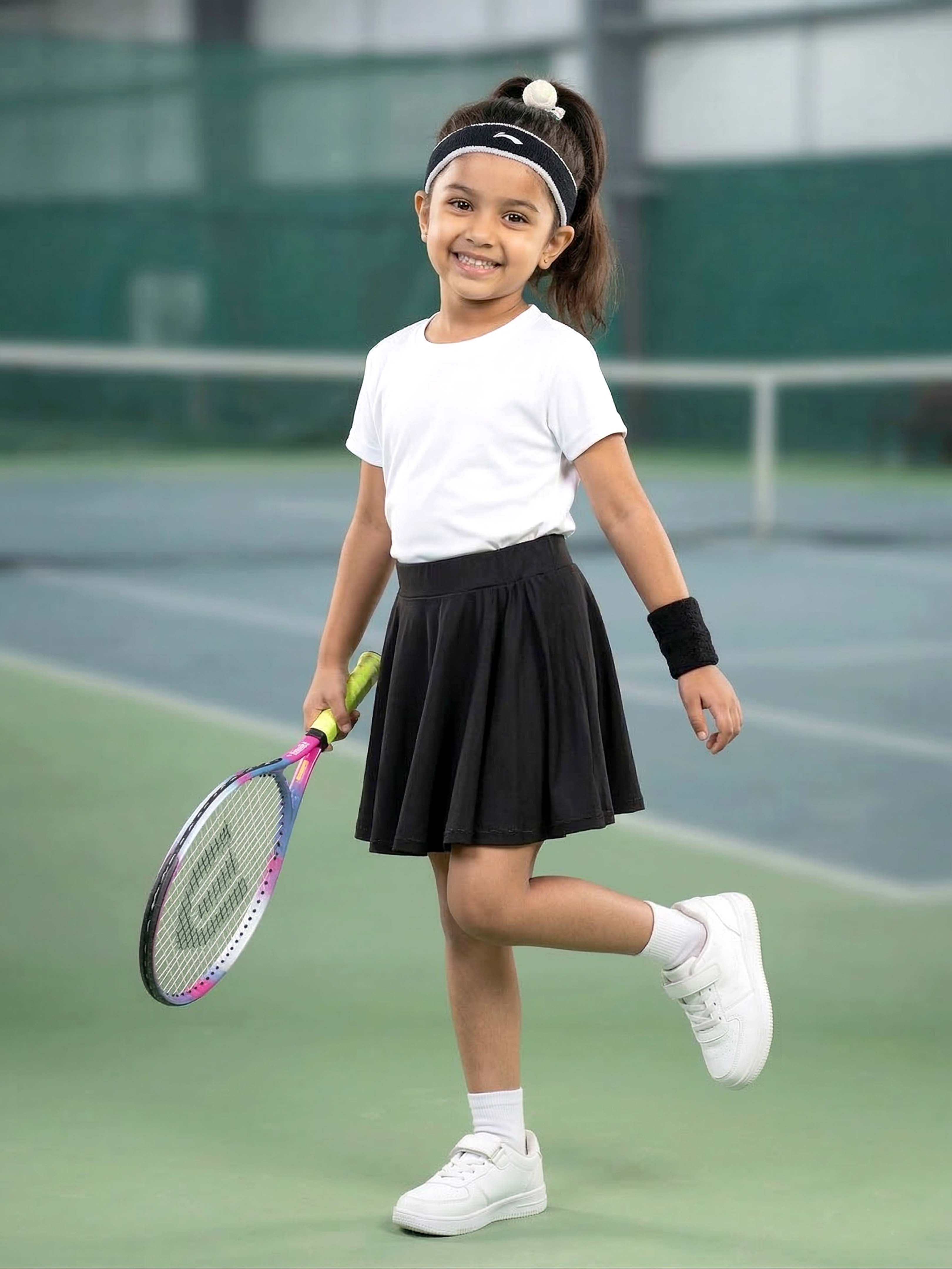 The semi-circular flared silhouette adds playful movement, while the wide elasticated waistband ensures a smooth and secure fit. Ideal for sports, playtime, outings, and everyday active wear.