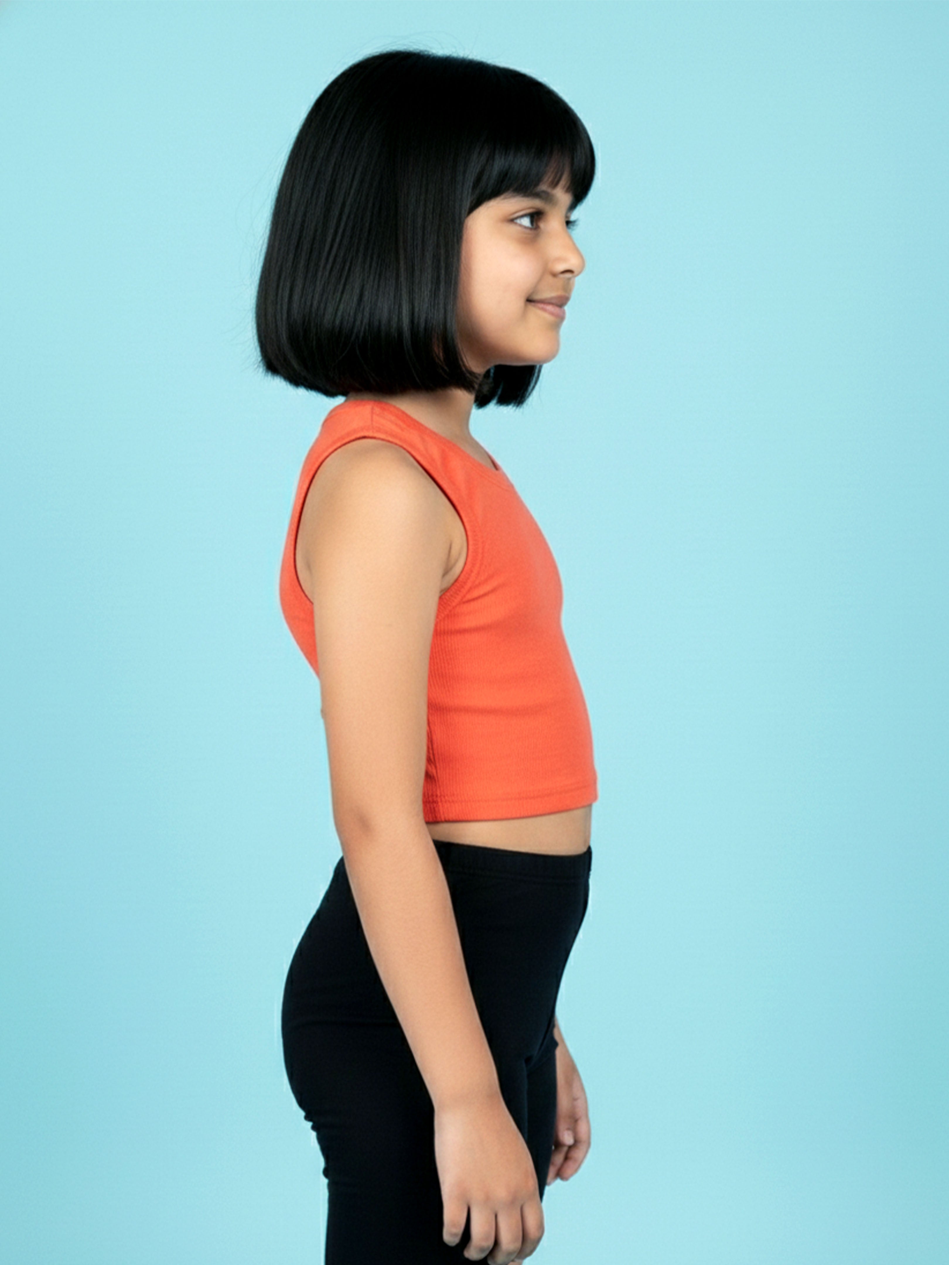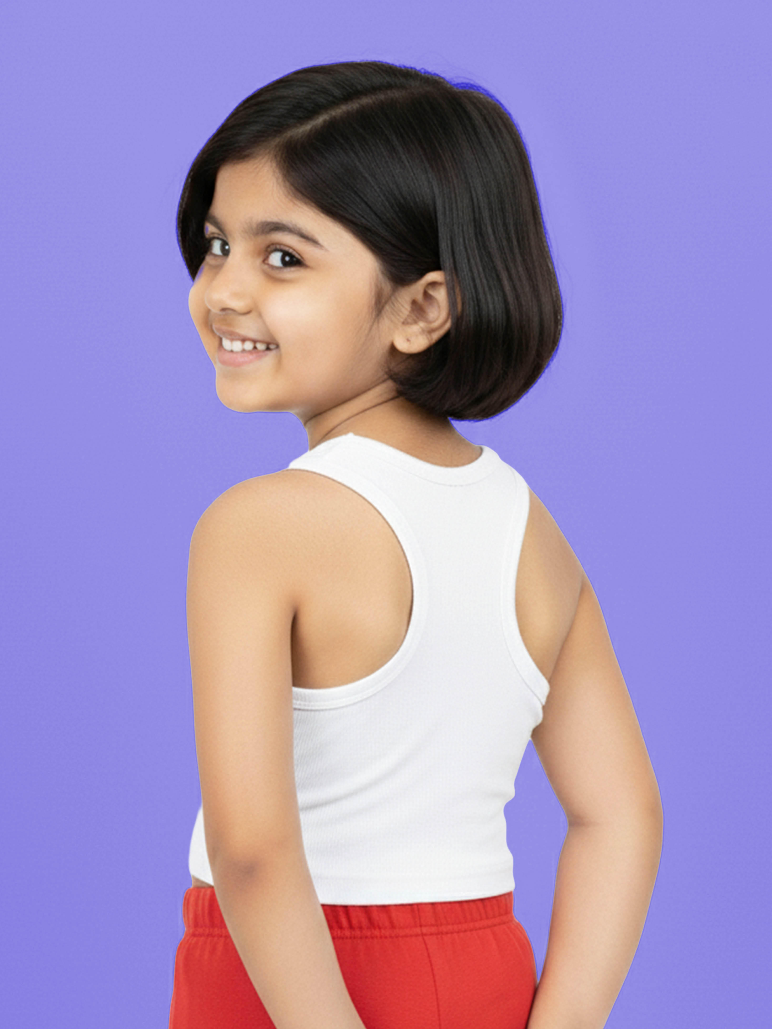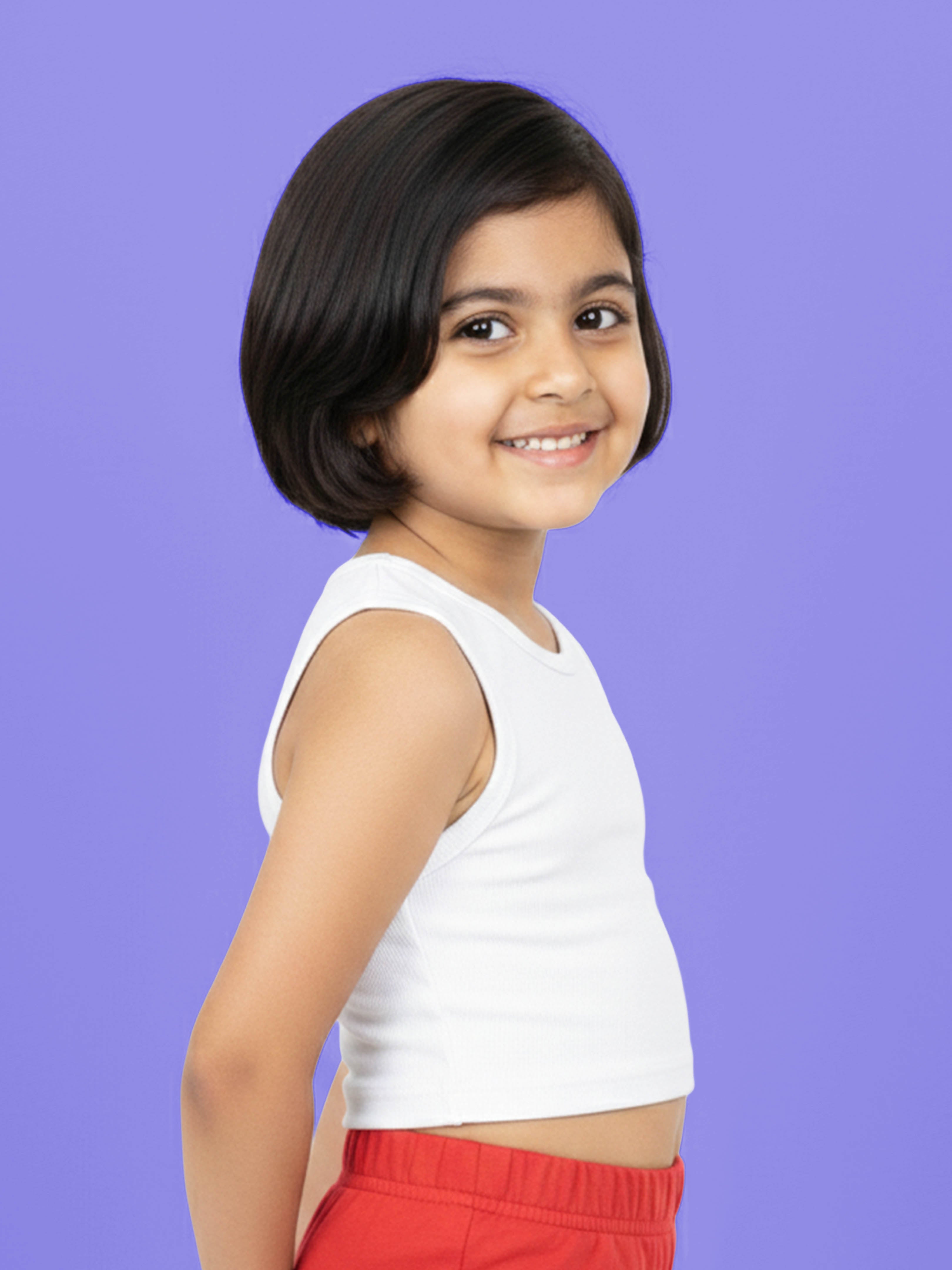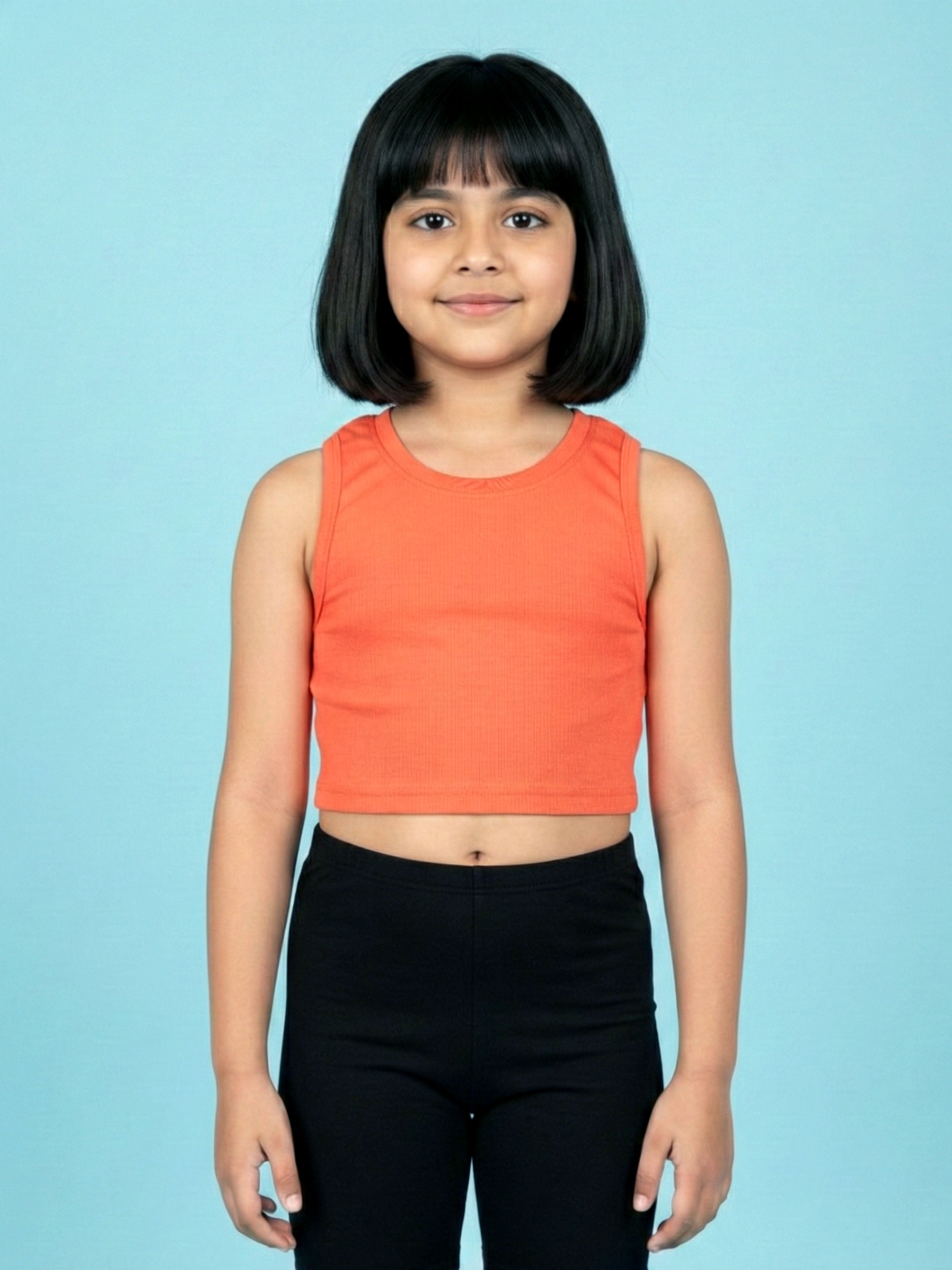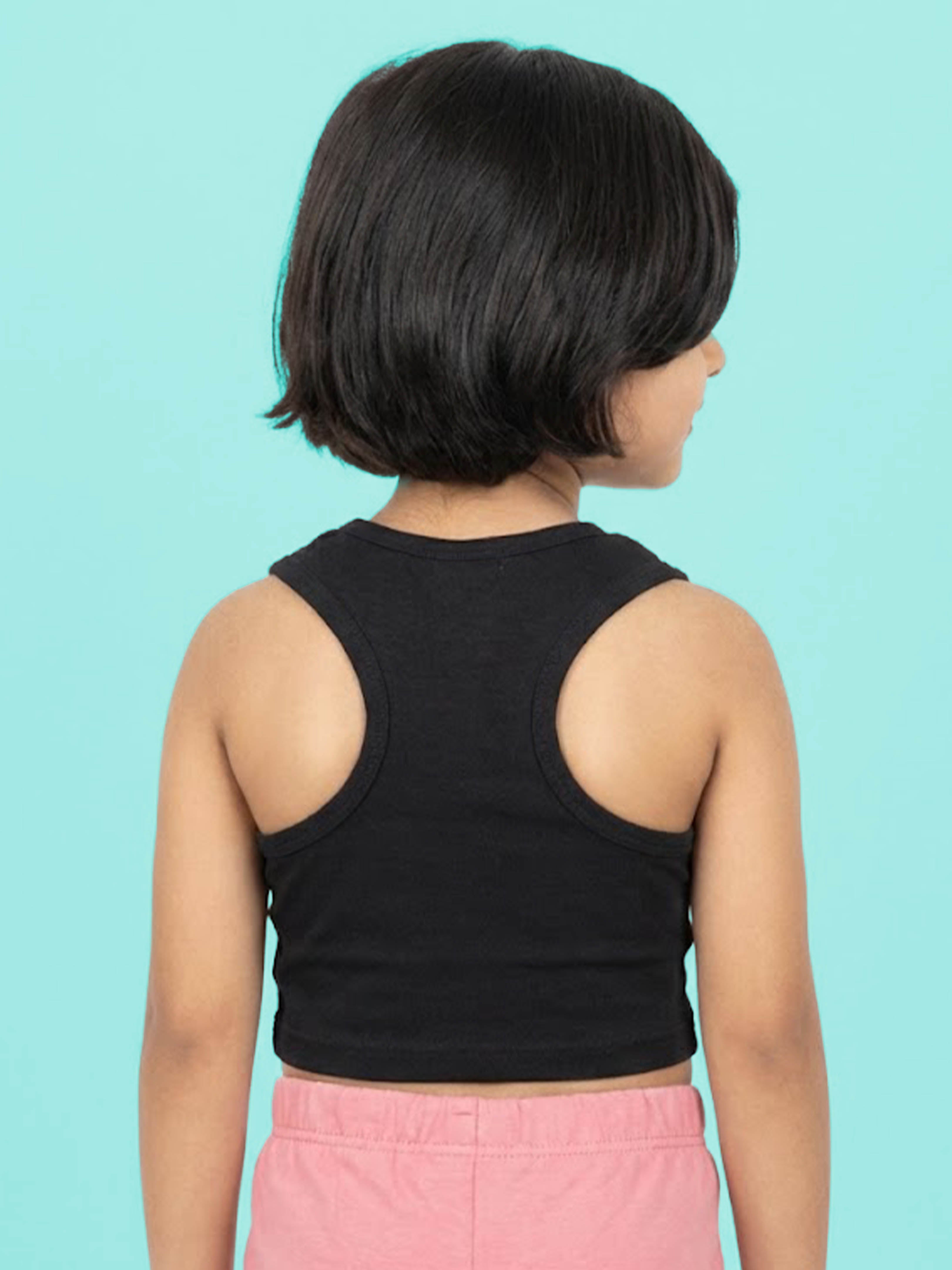 Crafted from stretchable Lycra rib fabric, this top offers a snug yet comfortable fit while remaining lightweight and gentle on the skin. The sleeveless design keeps kids cool during warm weather, while the cropped length adds a modern, fashion-forward touch. Easy to pair with shorts, skirts, joggers, or leggings, this versatile top works well for playtime, outings, vacations, and everyday wear.