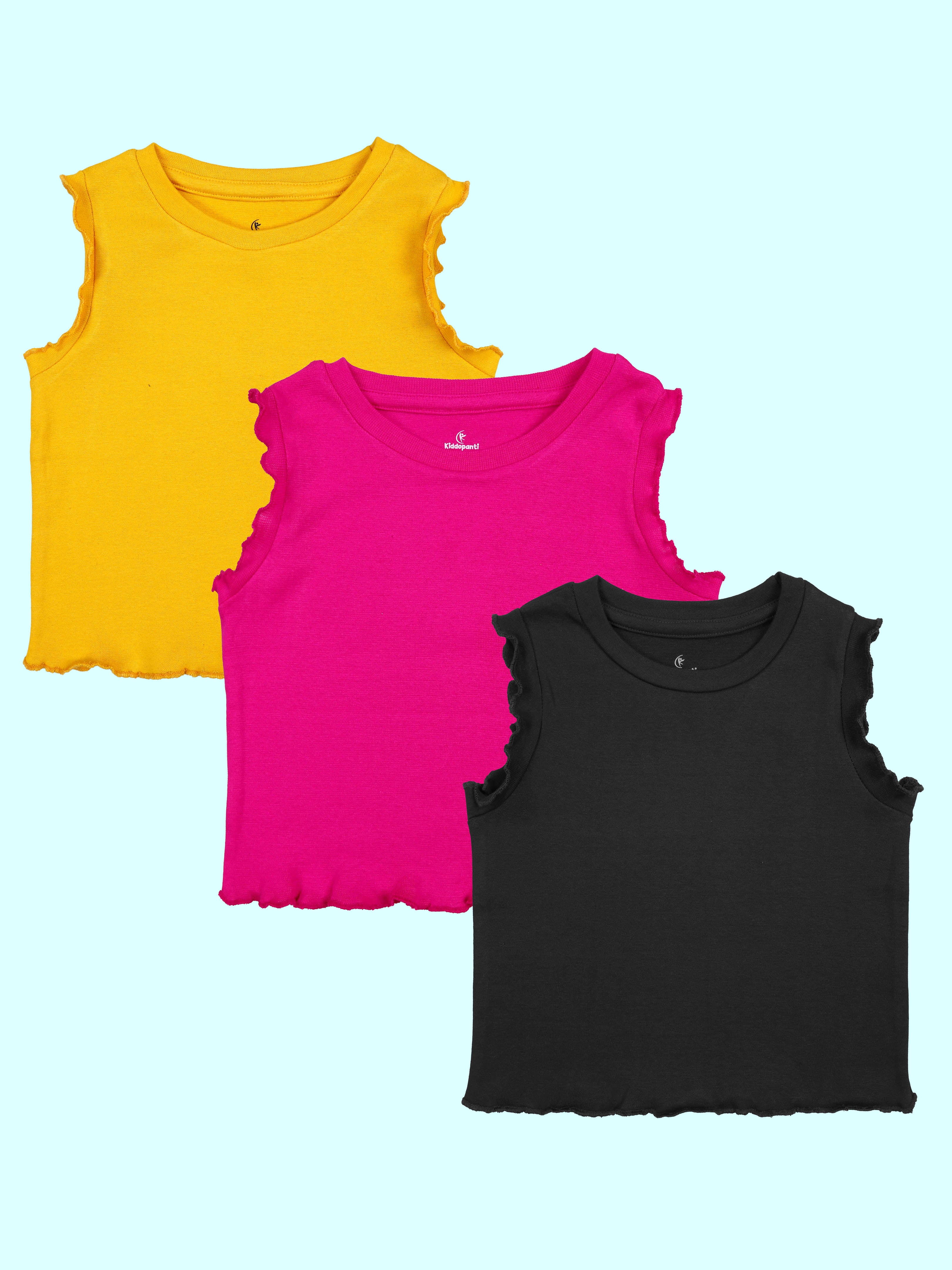 Girls Cotton Frill Sleeves Rib Crop T-shirt pack of 3 Soft Cotton Casual Summer Tee