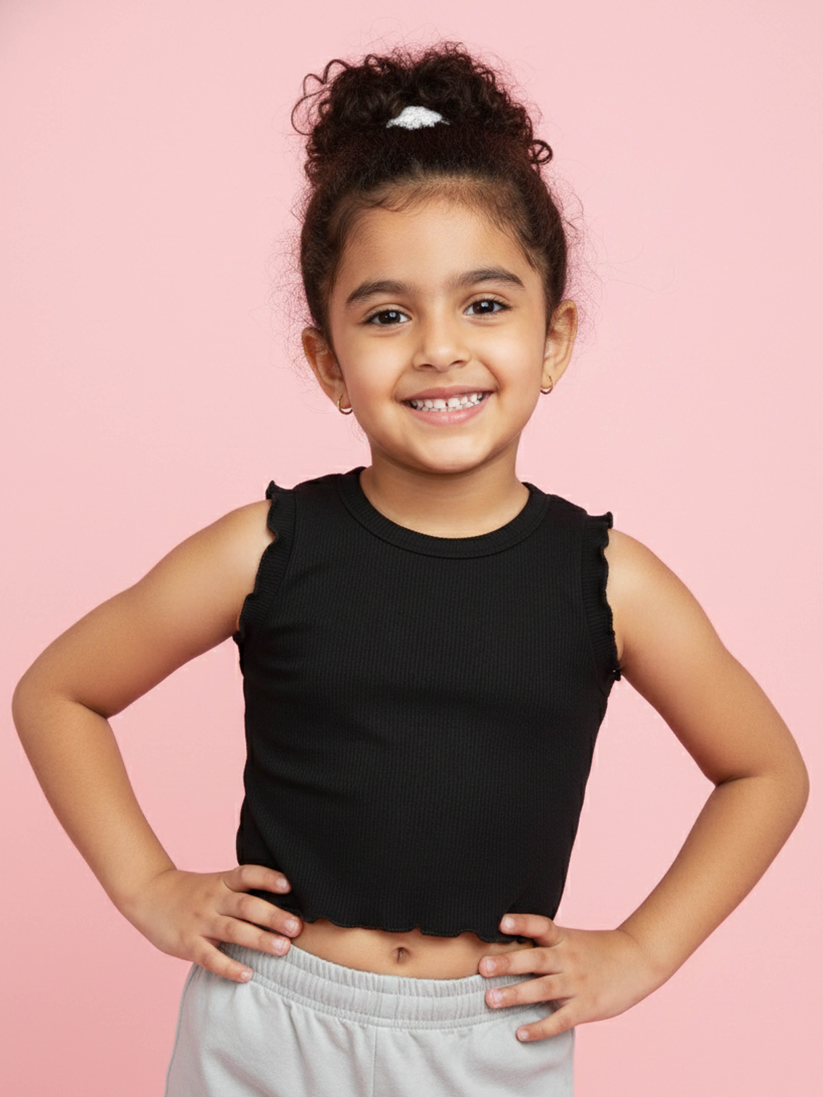 Add a cute and comfy essential to your little oneβs summer wardrobe with this Girls Sleeveless Ribbed Crop Top. Designed for everyday ease and playful styling, this crop top features a soft ribbed texture and a sleeveless silhouette that keeps kids cool and comfortable during warm days.