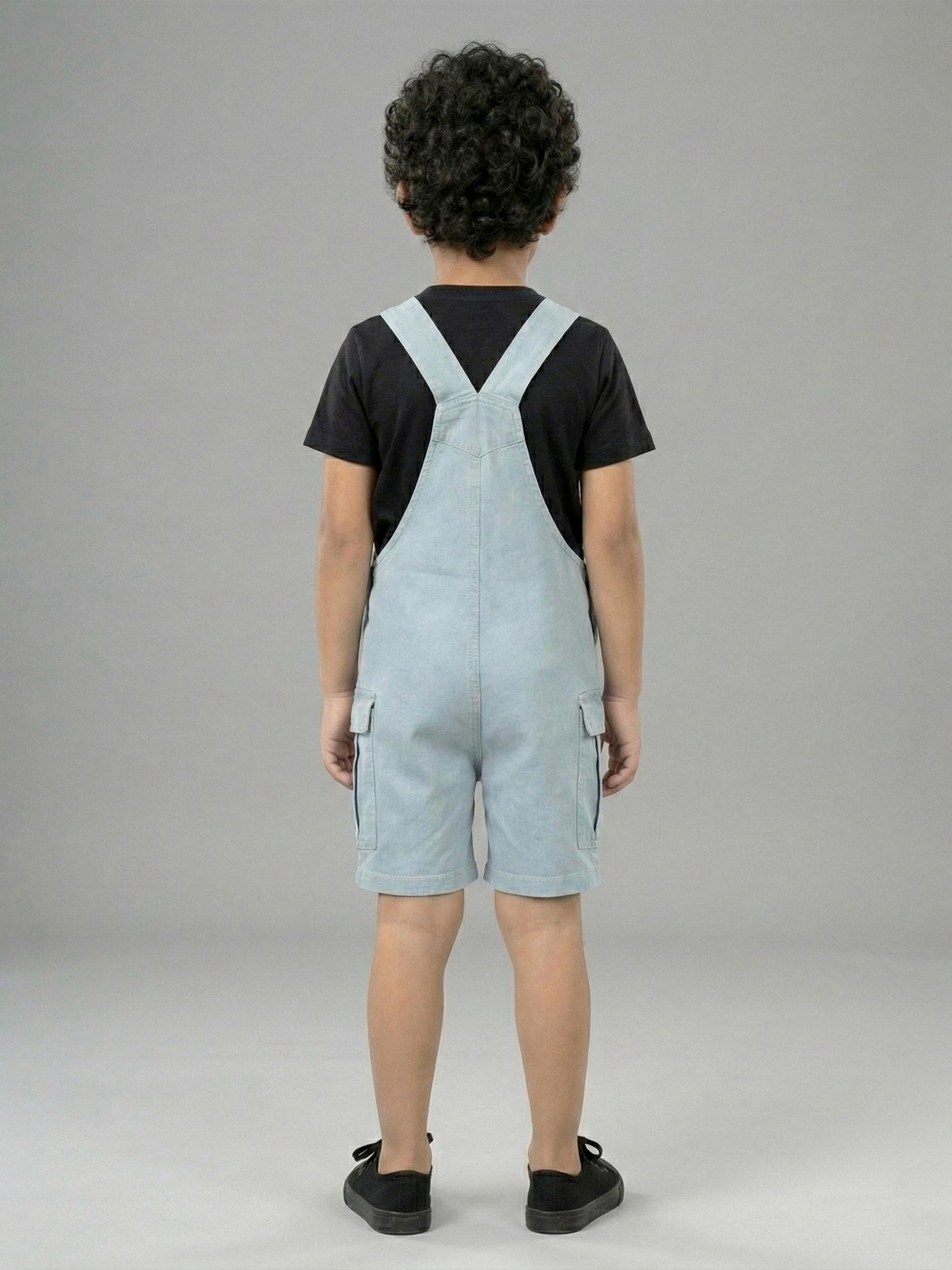 Kiddopanti Unisex Denim Solid Cargo Dungaree Shorts