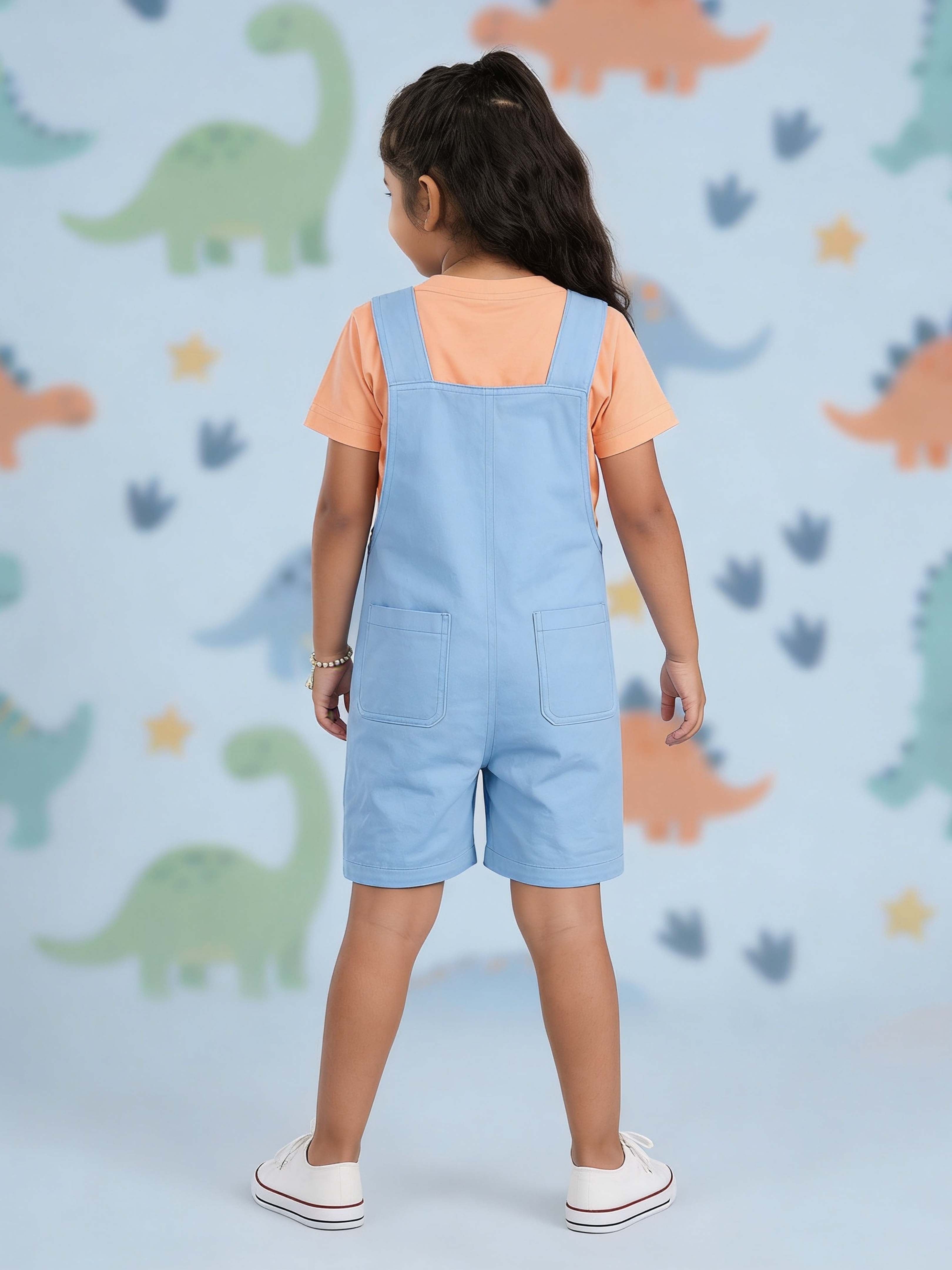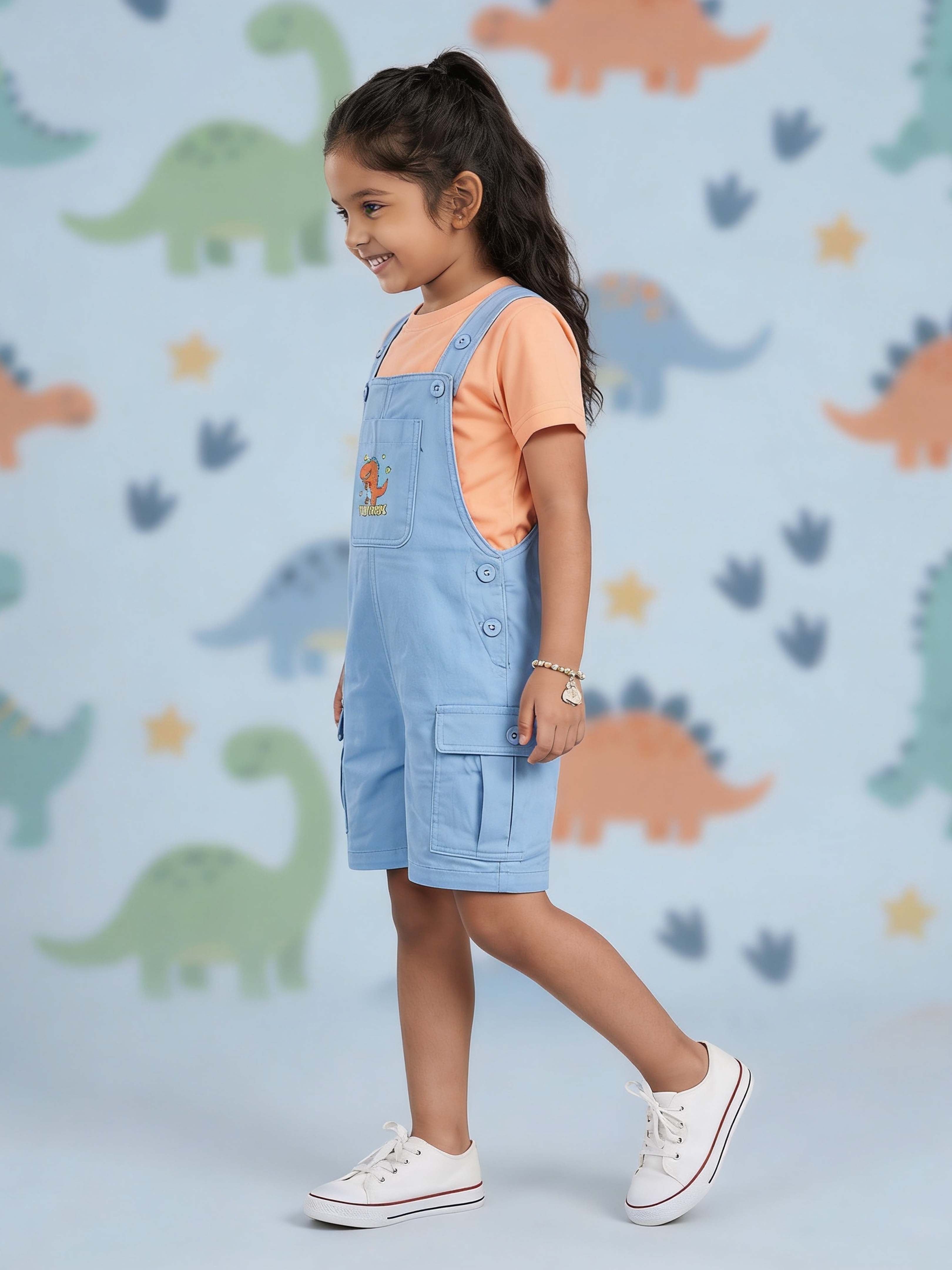 Kiddopanti Boys & Girls Denim Printed Cargo Dungaree Shorts