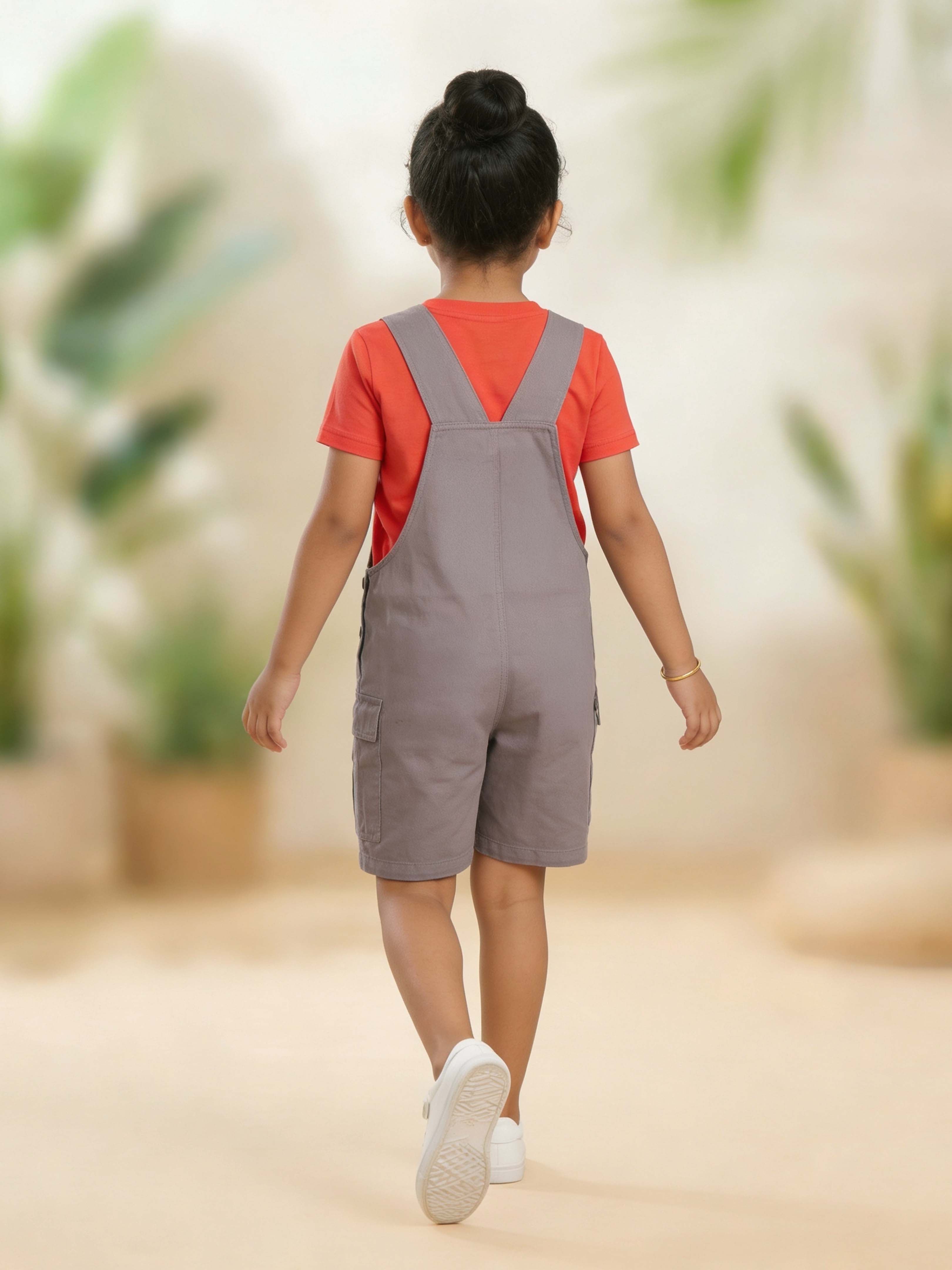 Dual cargo pockets with flap closures on both legs enhance the utility-inspired look while offering practical storage. Side button placket openings ensure easy wear, making this outfit perfect for school days, outings, travel, and active play.